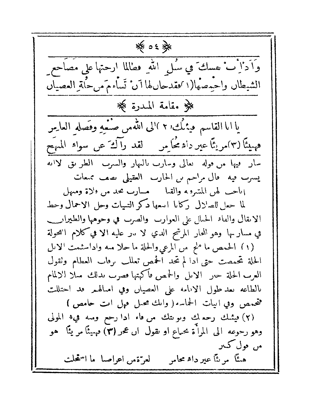 وأدإبْ نفسَكَ في سُبُلِ اللهِ فطالما أرحتَها على مضاجعِ الشيطان. وأحمضِها فقد حانَ لها أن تْسأمَ من خُلةِ العِصيان.