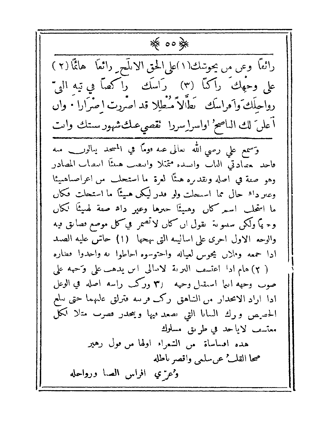 زائغاً وعنْ مَنْ يحوشُك على الحقِ الأبلجِ رائغاً هائماً على وجهِكَ راكباً رأسكْ راكضاً في تيهِ الغَيّ رواحلِكَ وأفراسَك. بطّالاً مُبطلاً قد أصرَرْتَ إصراراً. وإن أعلنَ لك النّاصحُ أو أسرُّ إسراراً. تنقضي عنكَ شهورُ سنتكِ. وأنتَ