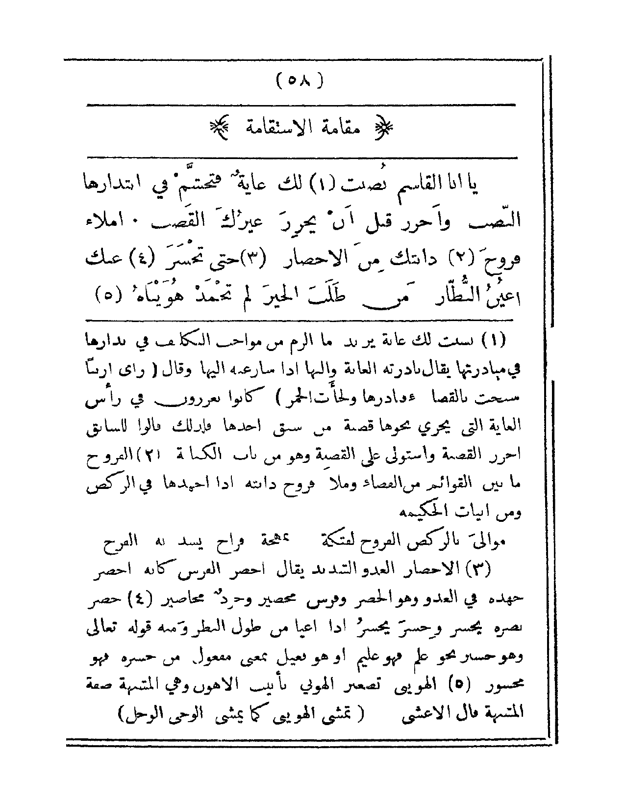 يا أبا القاسم نُصبتُ لك غايةٌ فتجشّم في ابتدارِها النصبْ وأحرِز قبلَ أن يُحرزَ غيرك القصَبْ. املأ فَروج دابّتك منَ الإحضار حتى تحسرَ عنكَ أعينُ النظّار منْ طلبَ الخيرَ لمْ تحمدْ هويناهُ