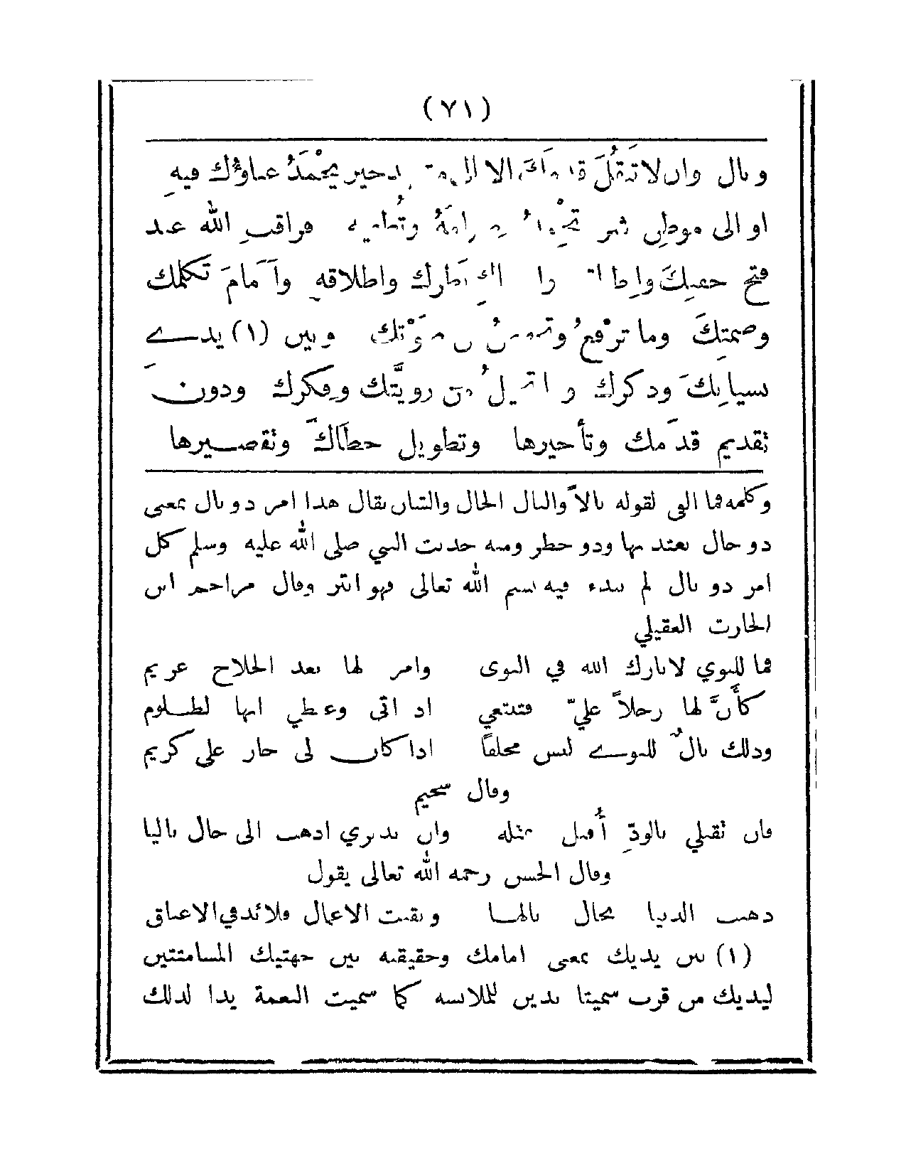 وبال. وأن لا تَنقُلَ قدمكَ إلا إلى مشهدِ خيرٍ يحمدُ عناؤك فيه. أو إلى موطنِ شرٍّ تُخمدُ ضرامهُ وتُطفيه فراقبِ اللهَ عندَ فتحِ جفنكَ وإطباقه. وإمساكِ نظرِكَ وإطلاقه. وأمام تكلمكَ وصمتك. وما تَرفعُ وتخفضُ من صوتكَ. وبينَ يديْ نسيانكَ وذكرِك. وما تجيلُ من رويّتكَ وفكرِك. ودونَ تقديمِ قدمكَ وتأخيرِها. وتطويلِ خُطاكَ وتقصيرِها