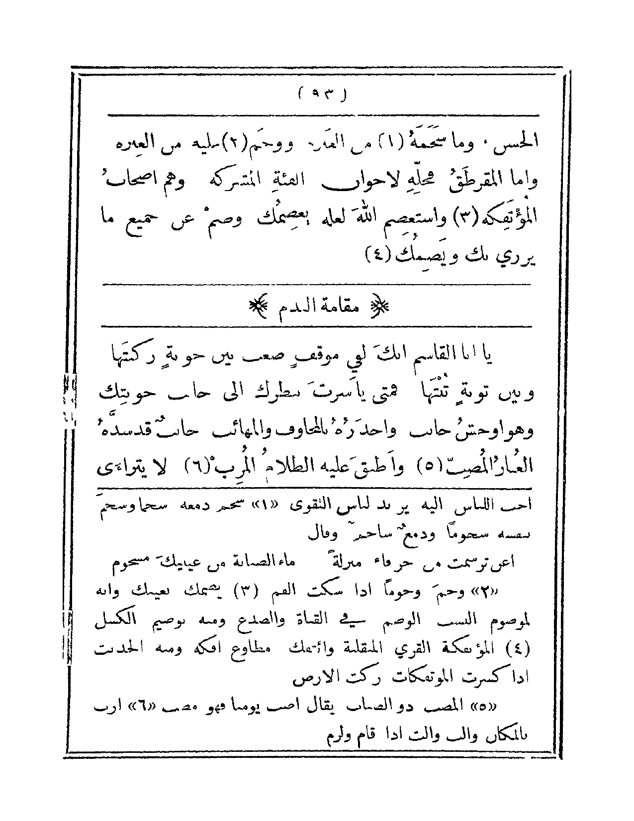 يا ابا القاسم إنكَ لَفي موقفٍ صعبٍ بينَ حَوبةٍ رِكبتها. وبينَ توبةٍ تبتَها. فمتى ياسرْتَ بنظرِكَ إلى جانبِ حوبتكَ وهوَ أوحشُ جانبْ. وأجدرُهُ بالمخاوفِ والمهايب جانبٌ قد سدَّهُ الغُبارُ المُضِبْ وأطبَقَ عليهِ الظلامُ المُرِبْ. لا يتراءَى