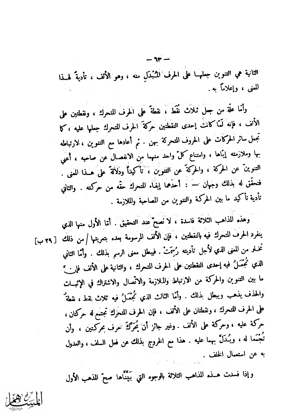 فَأَما نقط هَذَا الضَّرْب على قِرَاءَة من حقق الهمزتين مَعًا فكنقطه على قِرَاءَة من سهل الْهمزَة الثَّانِيَة غير انه يَجْعَل فِي مَكَان الْهمزَة المسهلة الَّتِي علامتها نقطة بالحمراء فَقَط نقطة بالصفراء وحركتها نقطة بالحمراء امامها وَصُورَة ذَلِك على القَوْل الَّذِي تجْعَل فِيهِ همزَة الِاسْتِفْهَام هِيَ المصورة كَمَا ترى أءنزل أءلقي وعَلى القَوْل الَّذِي تجْعَل فِيهِ همزَة الْقطع هِيَ المصورة كَمَا ترىءأنزل ءالقى وَتجْعَل بَين الهمزتين فِي مَذْهَب من فصل بَينهمَا بِأَلف ألف أَو مطة بالحمراء وَصُورَة ذَلِك على القَوْل الاول أءنزل أءلقي وعَلى الثَّانِي ءأنزل ءألقي