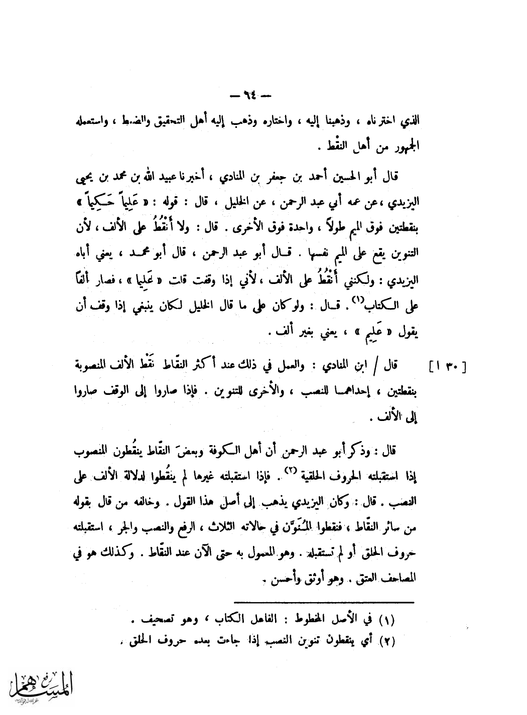 وَقد اخْتلف اهل النقط فِي جعل الْهمزَة المحققة فِي الالف وَالْيَاء وَالْوَاو اذا كن صورا لَهَا فَمنهمْ من يَجْعَلهَا فِي انفس هَذِه الْحُرُوف وَيجْعَل حَرَكَة الْمَفْتُوحَة فَوق الالف ان صورت الْفَا وحركة الْمَكْسُورَة تَحت الْيَاء ان صورت يَاء وحركة المضمومة امام الْوَاو ان صورت واوا وَمِنْهُم من يُخَالف بهَا فَيجْعَل الْمَفْتُوحَة وحركتها على الالف والمكسورة وحركتها تَحت الْيَاء والمضمومة