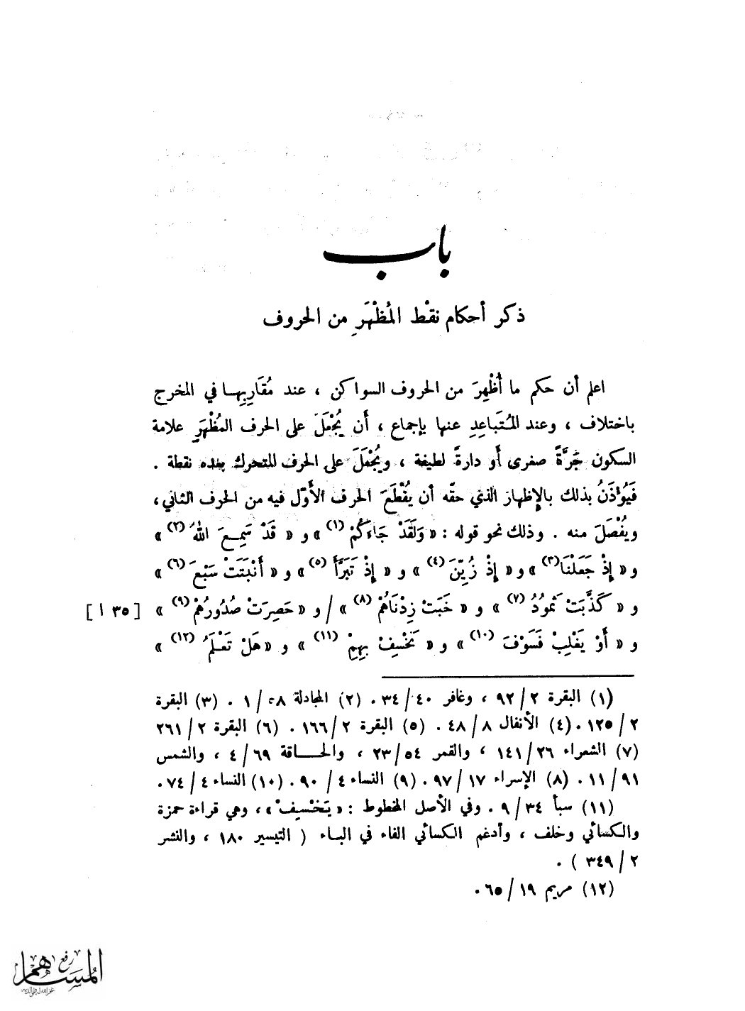 فَإِذا نقط هَذَا الضَّرْب جعلت الْهمزَة فِيهِ نقطة بالصفراء وحركتها عَلَيْهَا نقطة بالحمراء قيل الالف المصورة الا مَا لحق الْهمزَة فِيهِ تَنْوِين فَإِن الْحَرَكَة والتنوين يجعلان مَعًا على الالف نَفسهَا دون الْهمزَة لما قدمْنَاهُ من الْعلَّة فِي ذَلِك