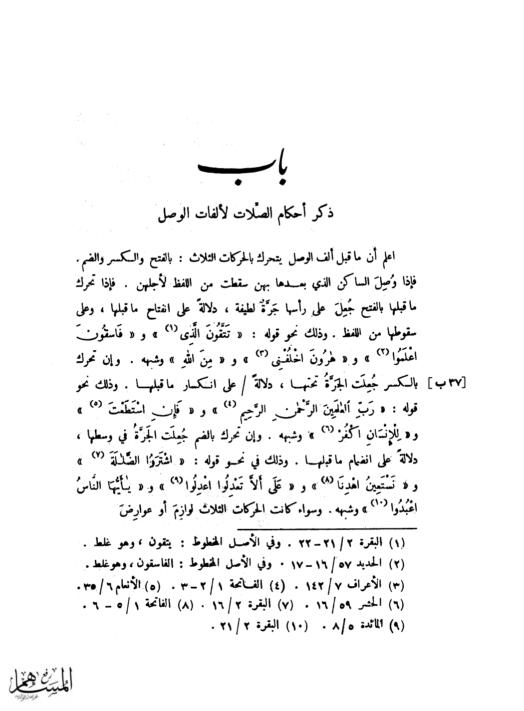 وَغَيره وَكَانَ وَكَانَ تسهيلها فِيهِ بِالْبَدَلِ ثمَّ بِحَذْف الْمُبدل مِنْهَا لسكونه وَسُكُون مَا قبله على ان الْمَكْسُورَة قد رسمت يَاء والمضمومة قد رسمت واوا فِي مَوَاضِع مَخْصُوصَة على نَحْو حركتهما وَسَيَأْتِي ذكر ذَلِك فِيمَا بعد ان شَاءَ الله