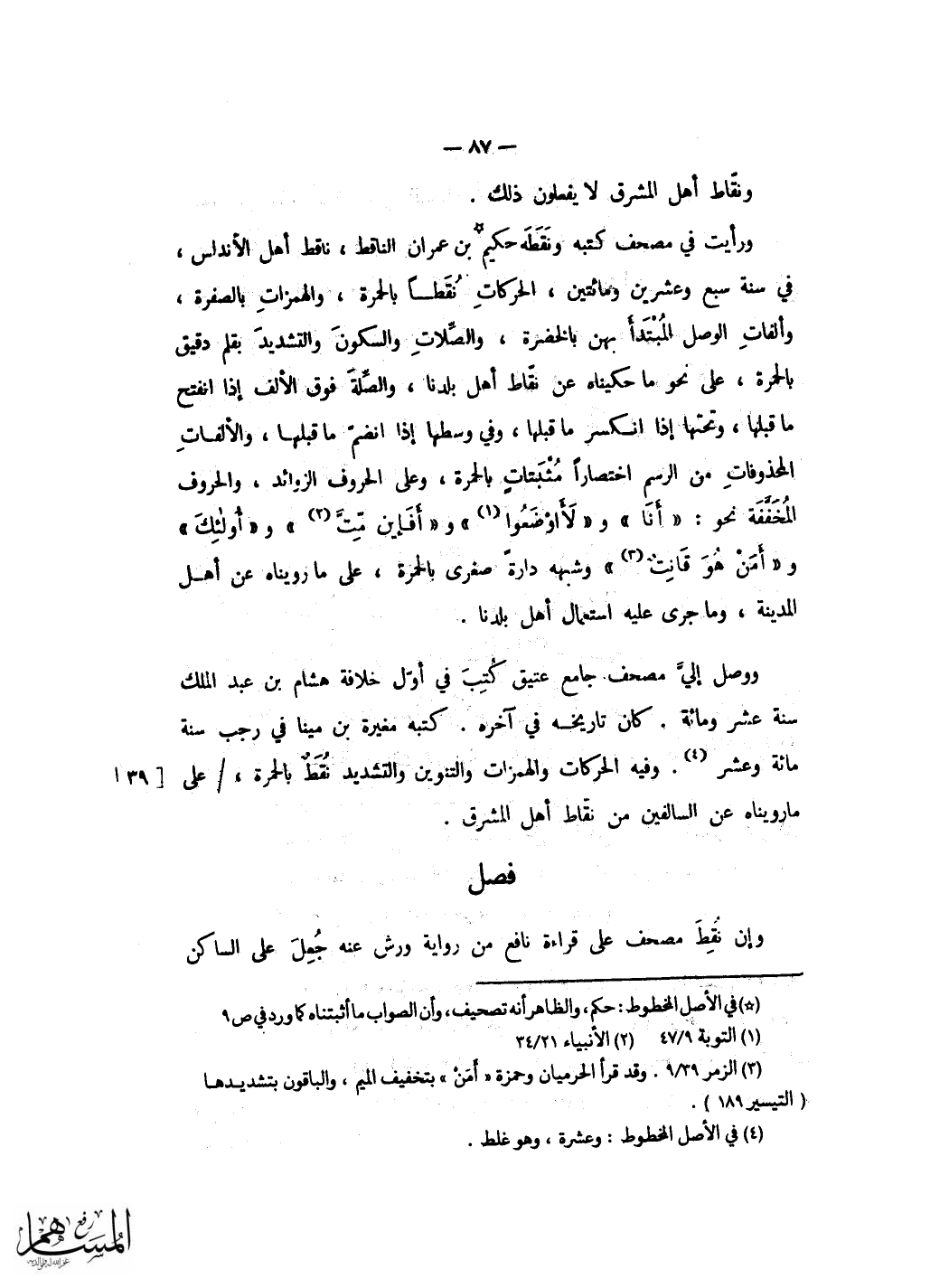 واما الالف فنحو قَوْله أَيْن شركاءي وَمن وراءى ودعاءى وءاباءى وَشبهه مِمَّا الْيَاء فِيهِ للمتكلم وَكَذَلِكَ اسراءيل حَيْثُ وَقع وَكَذَلِكَ الئى حَيْثُ وَقع على قِرَاءَة من اثْبتْ بعد الْهمزَة الْيَاء الاصلية وَكَذَلِكَ ميكاءيل على قِرَاءَة من همز واثبت بعد الْهمزَة يَاء