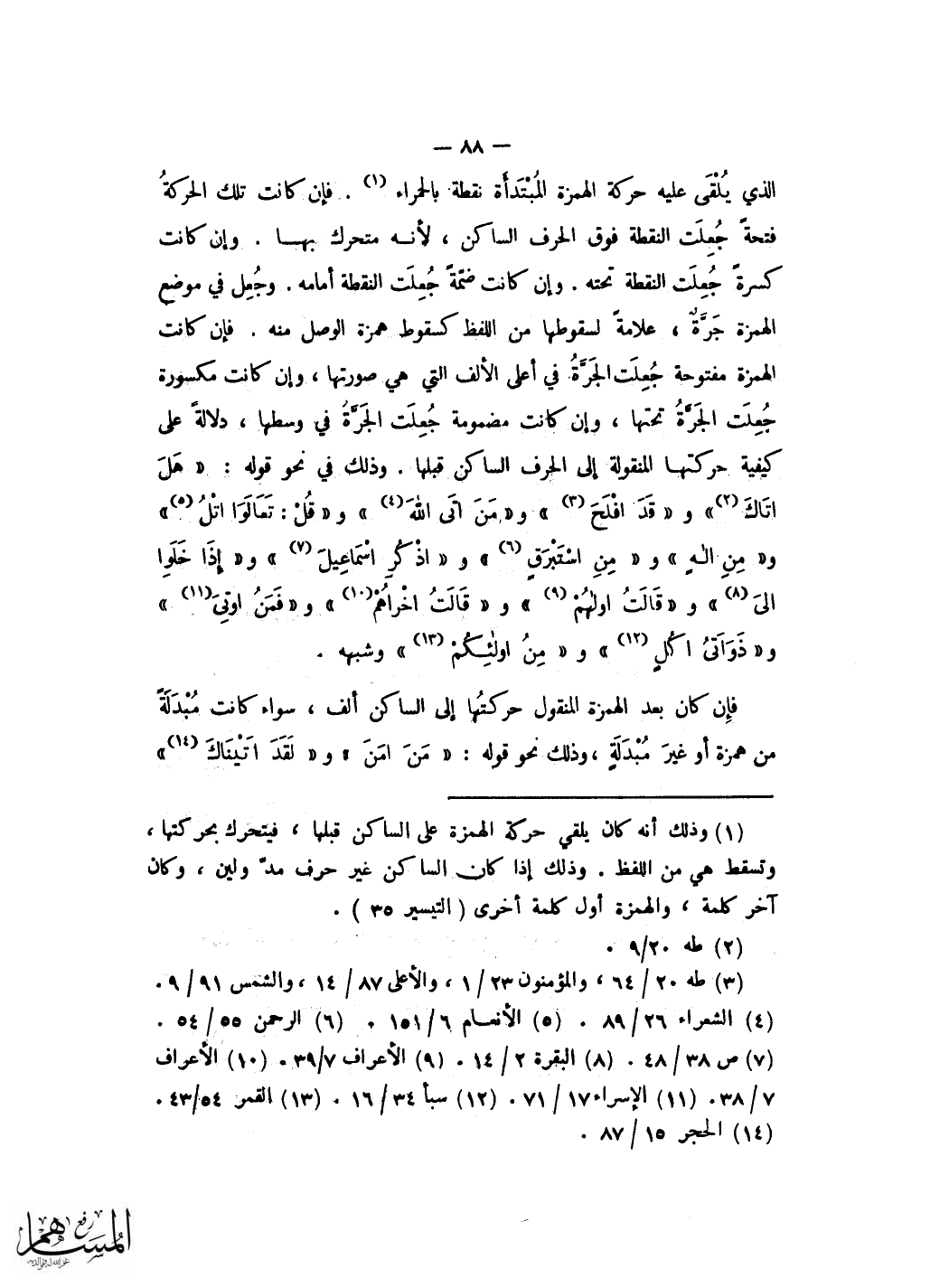 وءاخر سَيِّئًا وننشئكم وملئت وليبطئن وَفِئَة وفئتين وَمِائَة وَمِائَتَيْنِ وفلننبئن وناشئة وخاطئة وبالخاطئة وموطئا وخاسئا وان شانئك وَشبهه وَكَذَلِكَ رئاء النَّاس والانبئاء على قِرَاءَة من همز وَلَا يكون مَا قبلهَا الا مكسورا