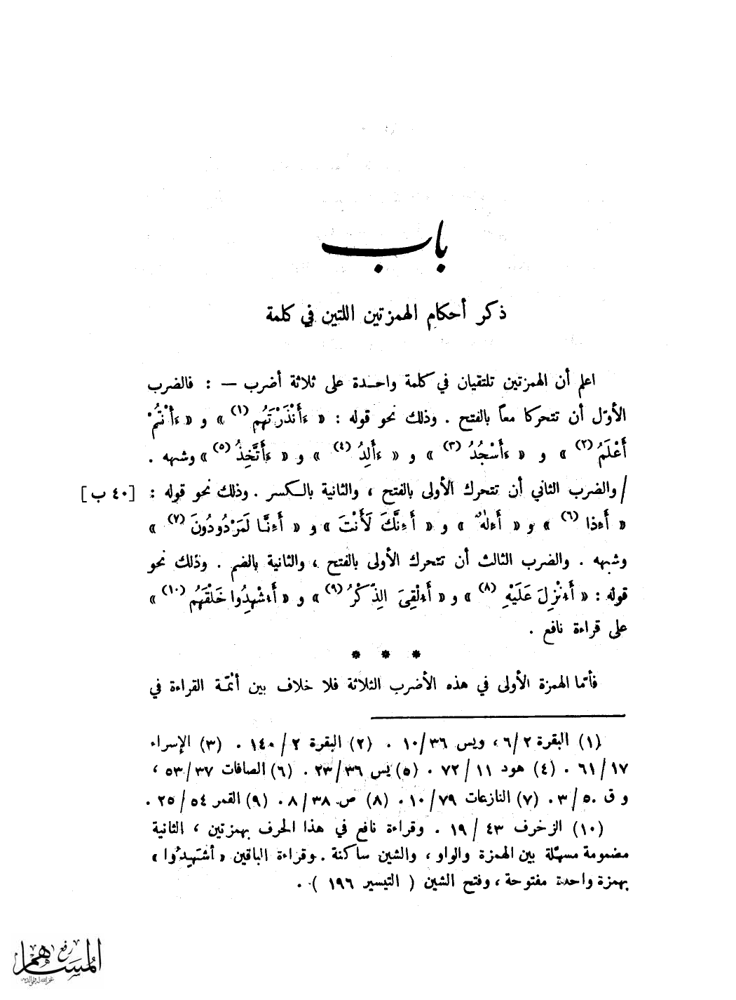 واذا نقط الضَّرْب الثَّالِث الَّذِي تقع الْهمزَة فِيهِ بعد الْيَاء جعلت الْهمزَة نقطة بالصفراء بعْدهَا فِي الْبيَاض من السطر وَجعلت حركتها نقطة بالحمراء على مَا تقدم وَبِاللَّهِ التَّوْفِيق
