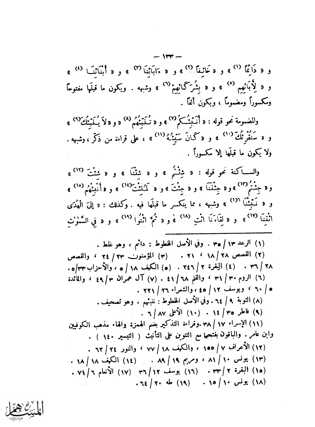وَحكى غير وَاحِد من عُلَمَاء الْعَرَبيَّة مِنْهُم أَبُو إِسْحَق ابراهيم بن السّري وَغَيره ان ذَلِك كَانَ قبل الْكتاب الْعَرَبِيّ ثمَّ ترك اسْتِعْمَال ذَلِك بعد وَبقيت مِنْهُ اشياء لم تغير عَمَّا كَانَت عَلَيْهِ فِي الرَّسْم قَدِيما وَتركت على حَالهَا فَمَا فِي مرسوم الْمُصحف من نَحْو ولأ اوضعوا هُوَ مِنْهَا