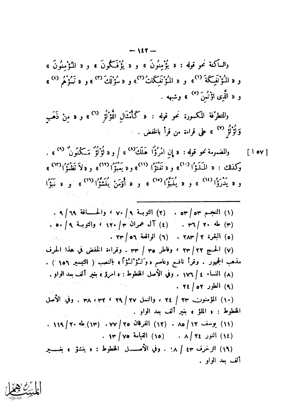 وَعلة هَذِه الْحُرُوف وَغَيرهَا من الْحُرُوف المرسومة على خلاف مَا يجْرِي بِهِ رسم الْكتاب من الهجاء فِي الْمُصحف الِانْتِقَال من وَجه مَعْرُوف مستفيض الى وَجه آخر مثله فِي الْجَوَاز والاستعمال وان كَانَ الْمُنْتَقل عَنهُ اظهر معنى واكثر اسْتِعْمَالا