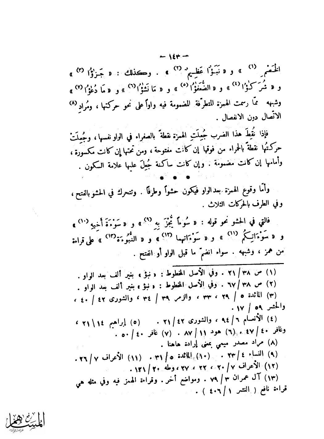ورسم فِي جَمِيع الْمَصَاحِف قَوْله لَا يلف قُرَيْش بياء بعد الْهمزَة ورسم الْفَهم بِغَيْر يَاء وَلم ترسم الالف بعد اللَّام فِي الحرفين اختصارا