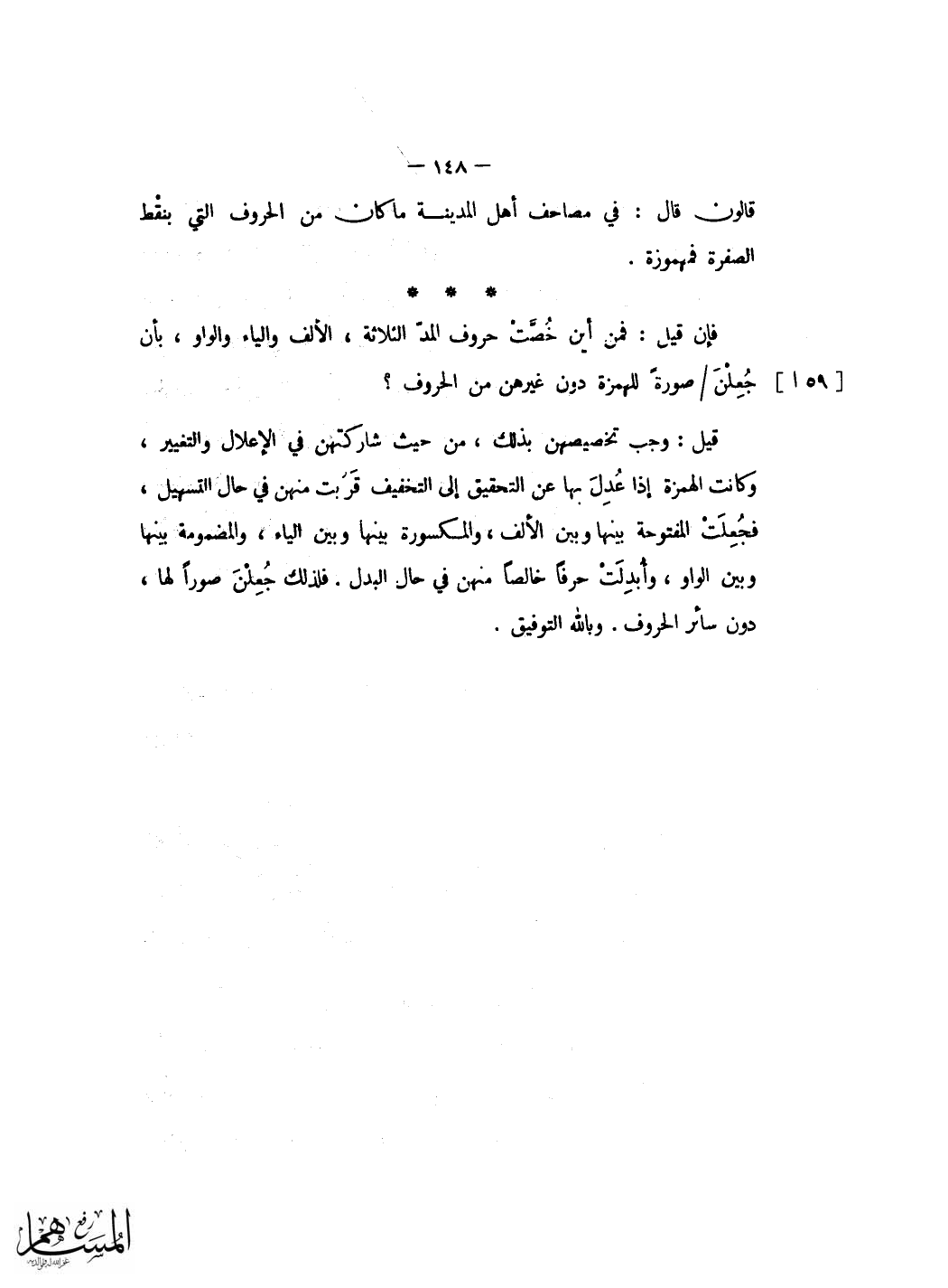 وَكَذَا ايضا تلْحق الياءات المحذوفة على قِرَاءَة من اثبتهن فِي الْوَصْل دون الْوَقْف اَوْ فِي الْوَصْل وَالْوَقْف نَحْو قَوْله الداع اذا دعان وواتقون يأولي الالباب واخشون وَيَوْم يَأْتِ والمتعال وَشبهه مِمَّا قد ذكرنَا جَمِيعه فِي المرسوم وَغَيره وَبِاللَّهِ التَّوْفِيق