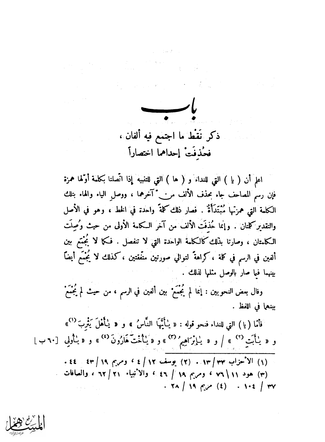 بَاب ذكر اللَّام الف واي الطَّرفَيْنِ مِنْهُ هِيَ الْهمزَة
