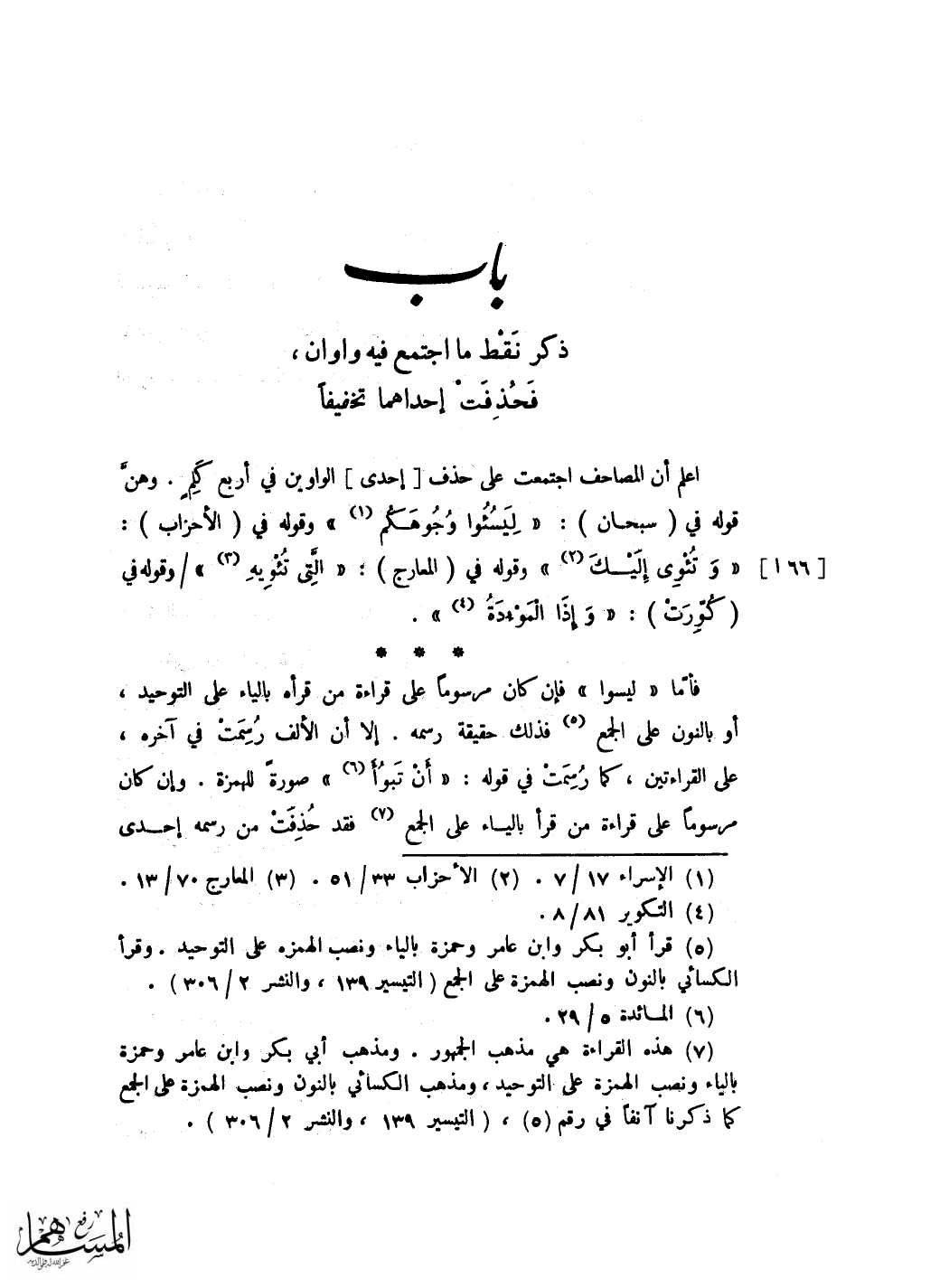 وينقط ونعمة فِي الدُّخان واولي النِّعْمَة فِي المزمل وتترك نقطة الْمَكْسُورَة النُّون