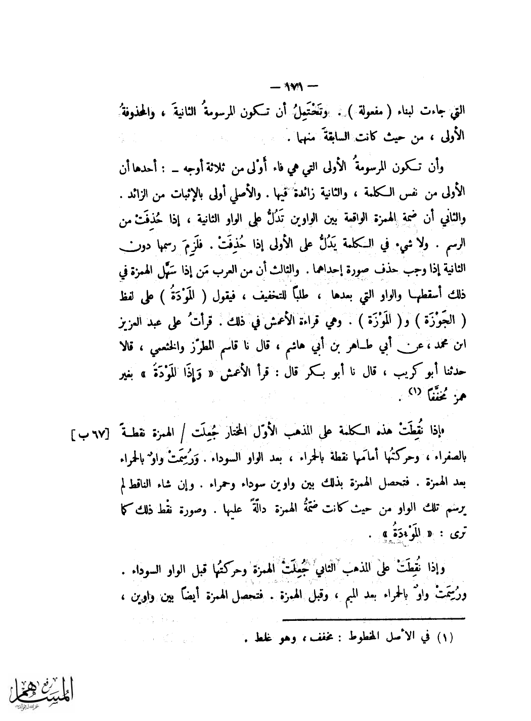 واما الْحُرُوف الَّتِي اصلها الالف وَلم تكْتب فِي الْمَصَاحِف بالالف فتتركها مُجَرّدَة بِلَا نقط مثل بنينها وزينها وحفظنها فَلَا تنقط النُّون فَإِن نقطتها اخطأت