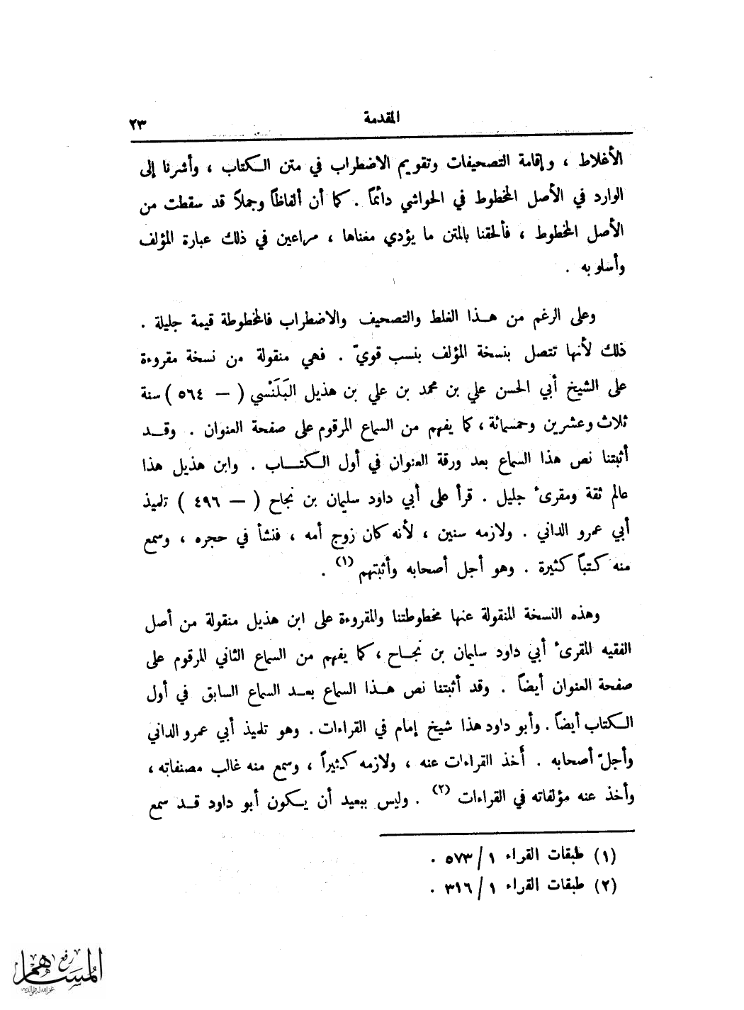 ثمَّ ذكر اصولا من النقط ثمَّ قَالَ فَفِي نقط الْمَصَاحِف المدور الرّفْع وَالنّصب والخفض وَالتَّشْدِيد والتنوين وَالْمدّ وَالْقصر وَلَوْلَا أَن ذَلِك كُله فِيهِ مَا كَانَ لَهُ معنى قَالَ وَقد كَانَ بعض من يحب ان يزِيد فِي بَيَان النقط مِمَّن يسْتَعْمل الْمُصحف لنَفسِهِ ينقط الرّفْع والخفض وَالنّصب بالحمرة وينقط الْهَمْز مُجَردا بالخضرة وينقط المشدد بالصفرة كل ذَلِك بقلم مدور وَهَذَا أسْرع