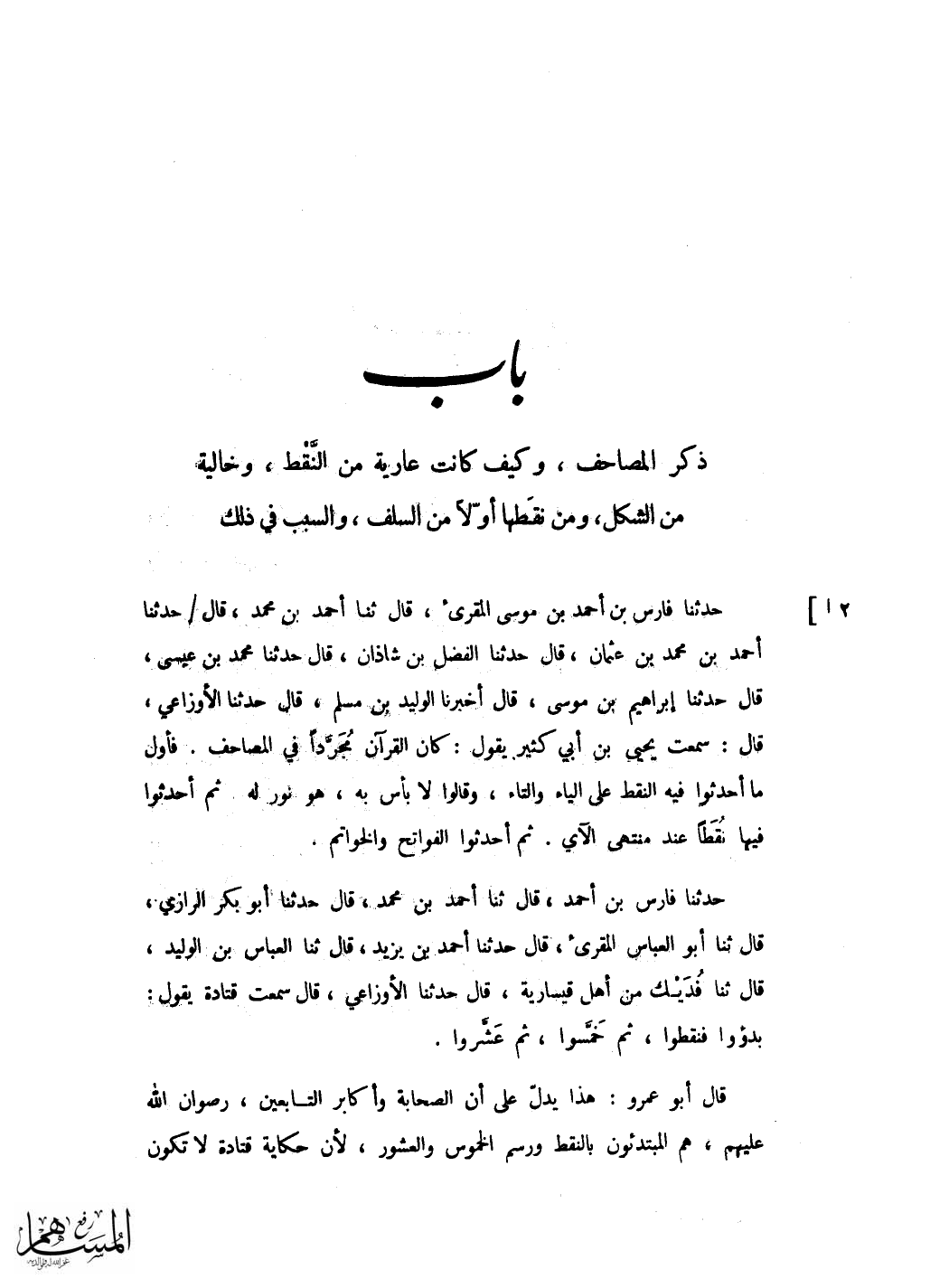 وَإِذا نقط جَمِيع مَا تقدم مِمَّا اختلس الْحَرَكَة فِيهِ ابو عَمْرو اَوْ اخفاها اَوْ رامها هُوَ وَغَيره على مَذْهَب من اشبعها فِيهِ جعل عَلامَة الفتحة فِي قَوْله {لَا تعدوا} و {يهدي} و {يخصمون} الْفَا صغرى مضجعة فَوق الْعين وَالْهَاء وَالْخَاء كَمَا ترى وَجعل عَلامَة الْكسر فِي قَوْله {بارئكم} و {أرنا} و {أَرِنِي} و {فَنعما} يَاء صغرى تَحت الْهمزَة وَالرَّاء وَالْعين كَمَا ترى وَجعل عَلامَة الضمة فِي قَوْله {يَأْمُركُمْ} و {يَأْمُرهُم} و {ينصركم} و {يشعركم} واوا صغرى أَمَام الرَّاء أَو فَوْقهَا كَمَا ترى