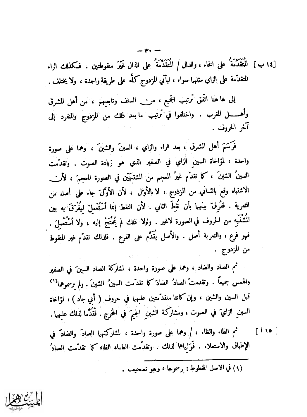 وَإِن نقط ذَلِك على مَذْهَب من بَين غنة النُّون عِنْد الرَّاء وَاللَّام وَالْيَاء وَالْوَاو مَعَ الادغام فَفِي النُّون وَهَذِه الْحُرُوف وَجْهَان أَحدهمَا أَن تعرى النُّون من عَلامَة السّكُون ويعرى الْحَرْف بعْدهَا من عَلامَة التَّشْدِيد فتجعل عَلَيْهِ نقطة لَا غير فَيدل بذلك على أَن النُّون لم تنْقَلب الى لفظ ذَلِك الْحَرْف قلبا صَحِيحا وَلَا أدغمت فِيهِ إدغاما تَاما وَهَذَا كَانَ مَذْهَب شَيخنَا ابي الْحسن عَليّ بن مُحَمَّد بن بشر نضر الله وَجهه فِي نقط ذَلِك من حَيْثُ كَانَ ضربا من الاخفاء الَّذِي يعْدم الْقلب وَالتَّشْدِيد فِيهِ رَأْسا وَلم يكن إدغاما صَحِيحا