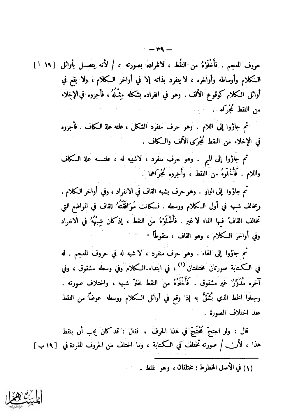 فَإِن نقط ذَلِك على مَذْهَب من جعله إدغاما صَحِيحا جعل على النُّون السَّوْدَاء عَلامَة التَّشْدِيد وَجعل قبلهَا نقطة عَلامَة للاشارة الَّتِي هِيَ الاشمام وَيجوز أَن تجْعَل تِلْكَ النقطة الدَّالَّة عَلَيْهِ بعد النُّون لَان من عُلَمَاء الْعَرَبيَّة من يَقُول إِن الْعُضْو يهيأ للإشمام بعد إخلاص السّكُون للنون الاولى وَقبل حُصُول إدغامها وَمِنْهُم من يَقُول إِنَّه يهيأ لَهَا بعد الْفَرَاغ من الادغام وَصُورَة نقط ذَلِك على الْوَجْهَيْنِ {تأمنا} {تأمنا} وَإِذا جعلت النقطة قبل النُّون جعل قبلهَا بعد الْمِيم عَلامَة السّكُون جرة ليدل بذلك على أَن الاشمام بعد خلوص السّكُون وَإِن لم يَجْعَل لَهُ عَلامَة فَحسن وَلَا يجوز أَن تلْحق النُّون المدغمة بالحمرة بعد الْمِيم على مَذْهَب هَؤُلَاءِ لانها تذْهب فِي قَوْلهم بالادغام رَأْسا