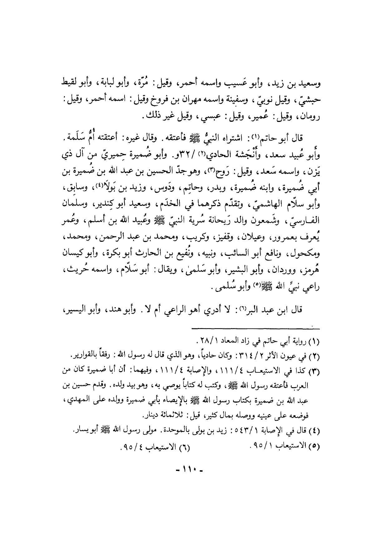 قَالَ أَبُو حَاتِم: اشْتَرَاهُ النبيُّ [صلى الله عَلَيْهِ وَسلم] فَأعْتقهُ. وَقَالَ غَيره: أَعتَقته أُمُّ سَلَمة. وأَبو عُبيد سعد، وأَنْجَشة الْحَادِي / 32 و. وَأَبُو ضُميرة حِميريّ من آل ذِي يَزن، واسْمه سَعد، وَقيل: رَوح، وَهُوَ جدّ الْحُسَيْن بن عبد الله بن ضَميرة بن أبي ضُميرة، وَابْنه ضُميرة، وَبدر، وحاتِم، ودَوس، وَزيد بن بَولاَ، وسابِق، وَأَبُو سَلام الهاشميّ، وتقدّم ذكرهمَا فِي الخدَم، وَسَعِيد أَبُو كِندير، وسلمان الفارسيّ، وشَمعون وَالِد رَيحانة سُرية النبيّ [صلى الله عَلَيْهِ وَسلم] وعُبيد الله بن أسلم، وعُمر يُعرف بعمرور، وعيلان، وقفيز، وكريب، وَمُحَمّد بن عبد الرَّحْمَن، وَمُحَمّد، وَمَكْحُول، وَنَافِع أَبُو السَّائِب، وَنبيه، ونُفيع بن الْحَارِث أَبُو بكرَة، وَأَبُو كيسَان هُرمز، ووردان، وَأَبُو البشير، وَأَبُو سلمى، وَيُقَال: أَبُو سَلام، واسْمه حُريث، راعي نبيِّ الله [صلى الله عَلَيْهِ وَسلم] وَأَبُو سُلمى.