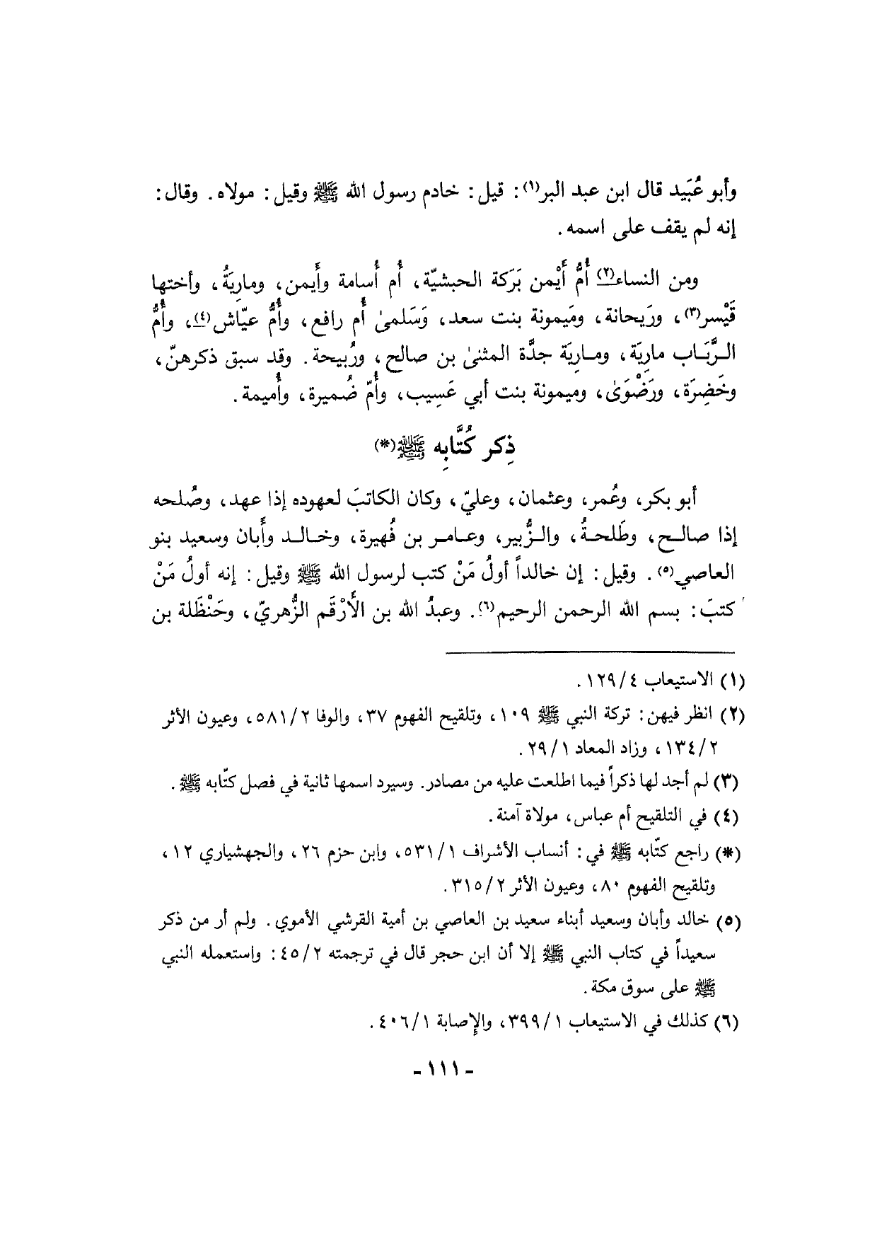 ذِكر كُتَّابِه [صلى الله عَلَيْهِ وَسلم]