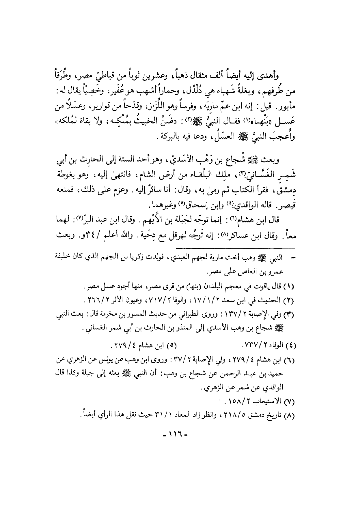 وَبعث [صلى الله عَلَيْهِ وَسلم] شُجاع بن وَهْب الأسَديّ، وَهُوَ أحد السِّتَّة إِلَى الحارِث بن أبي شَمِرِ الغَسَّاني، ملِك البلْقاء من أَرض الشَّام، فَانْتهى إِلَيْهِ، وَهُوَ بغوطة دمشق، فَقَرَأَ الْكتاب ثمَّ رمى بِهِ، وَقَالَ: أَنا سائرٌ إِلَيْهِ. وعزم على ذَلِك، فَمَنعه قَيصر. قَالَه الْوَاقِدِيّ وَابْن إِسْحَاق وَغَيرهمَا.