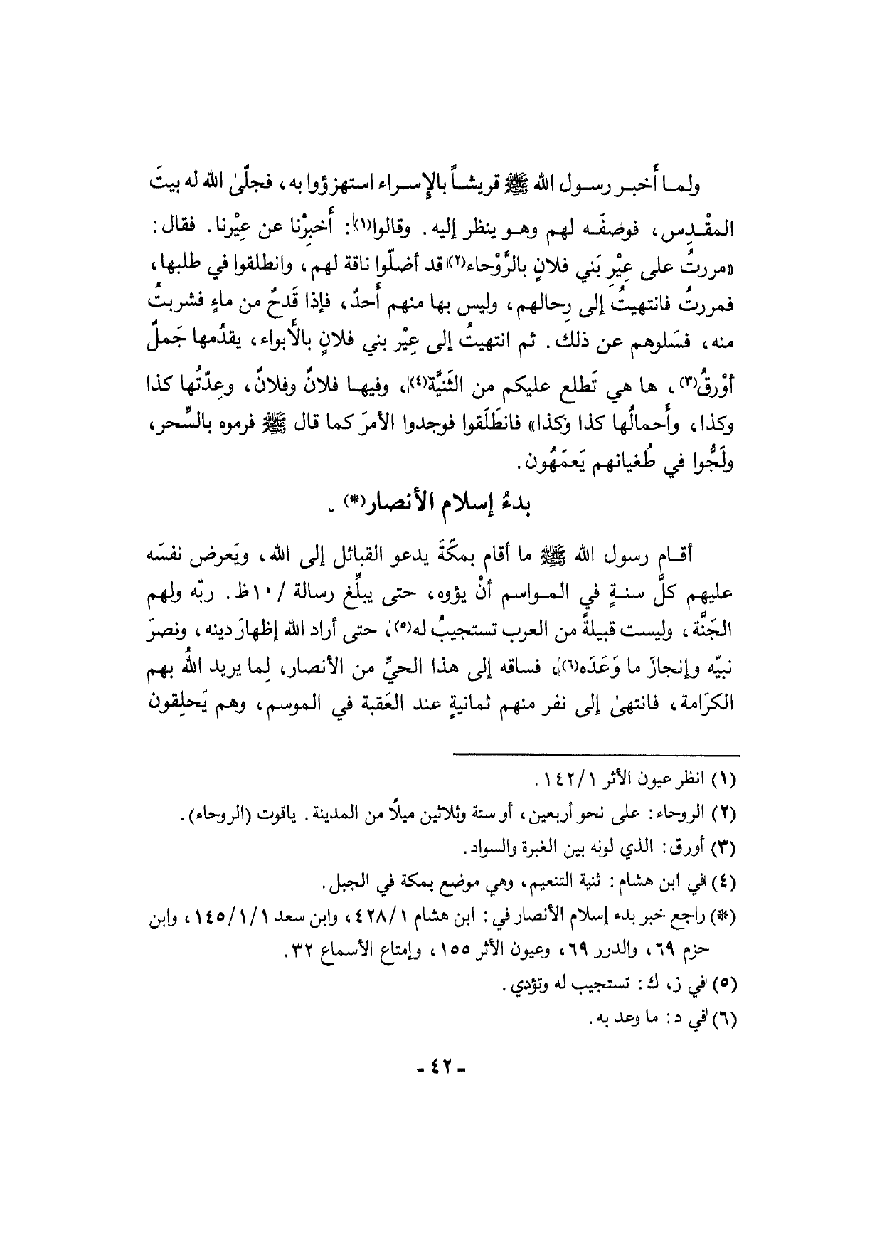 أَقَامَ رَسُول الله [صلى الله عَلَيْهِ وَسلم] مَا أَقَامَ بمكّةَ يَدْعُو الْقَبَائِل إِلَى الله، ويَعرض نفسَه عَلَيْهِم كلَّ سنةٍ فِي المواسم أنْ يؤوه، حَتَّى يبلِّغ رِسَالَة: 10 /؟ . ربّه وَلَهُم الجَنَّة، وَلَيْسَت قبيلةَ من الْعَرَب تستجيبُ لَهُ، حَتَّى أَرَادَ الله إظهارَ دينه، وَنصر نبيّه وإنجازَ مَا وَعَدَه، فساقه إِلَى هَذَا الحيِّ من الْأَنْصَار، لِما يُرِيد اللهُ بهم الكرَامة، فَانْتهى إِلَى نفر مِنْهُم ثمانيةٍ عِنْد العَقبة فِي الْمَوْسِم، وهم يَحلِقون