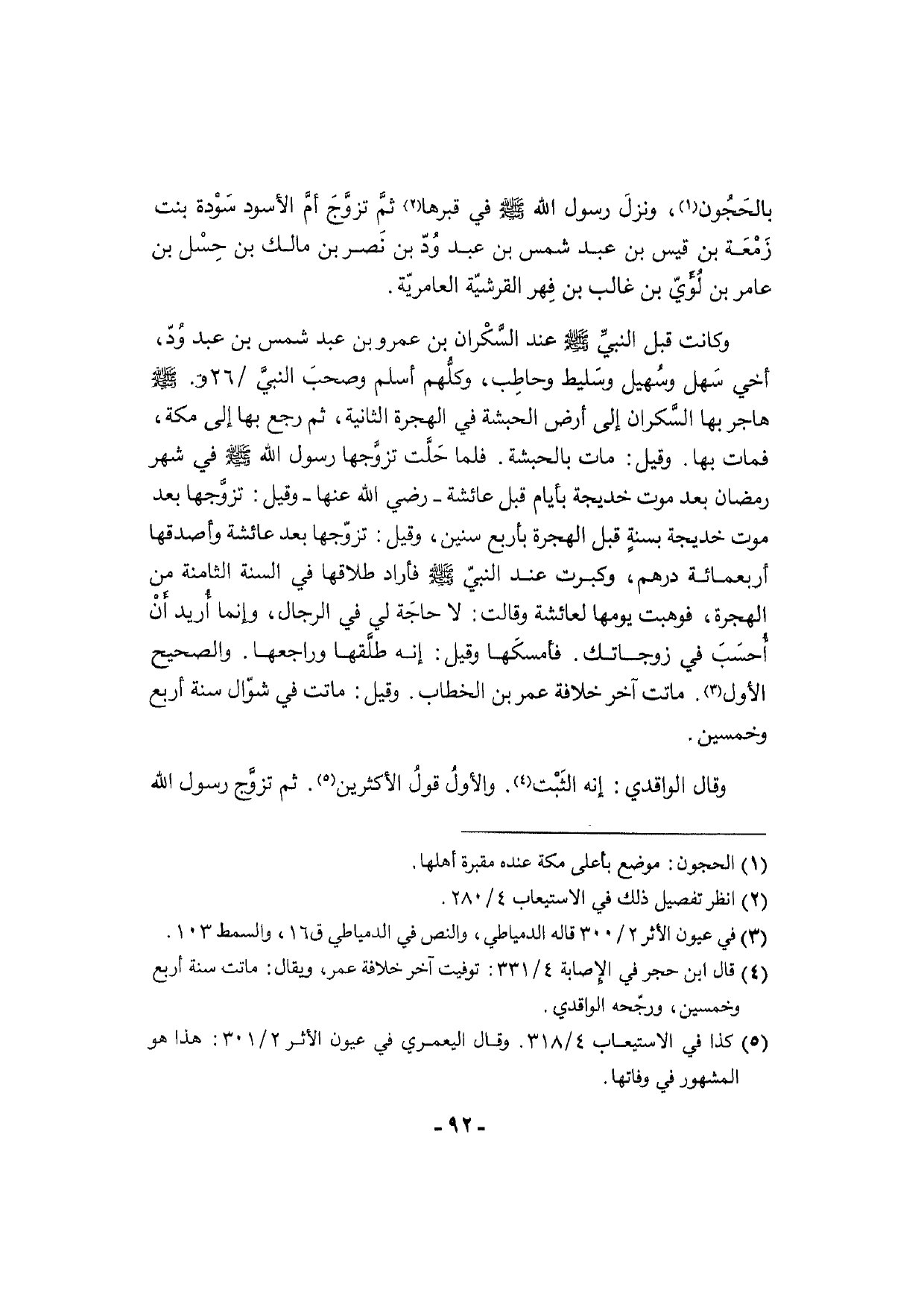 وَقَالَ الْوَاقِدِيّ: إِنَّه الثَبْت. والأولُ قولُ الْأَكْثَرين. ثمَّ تزوَّج رَسُول الله