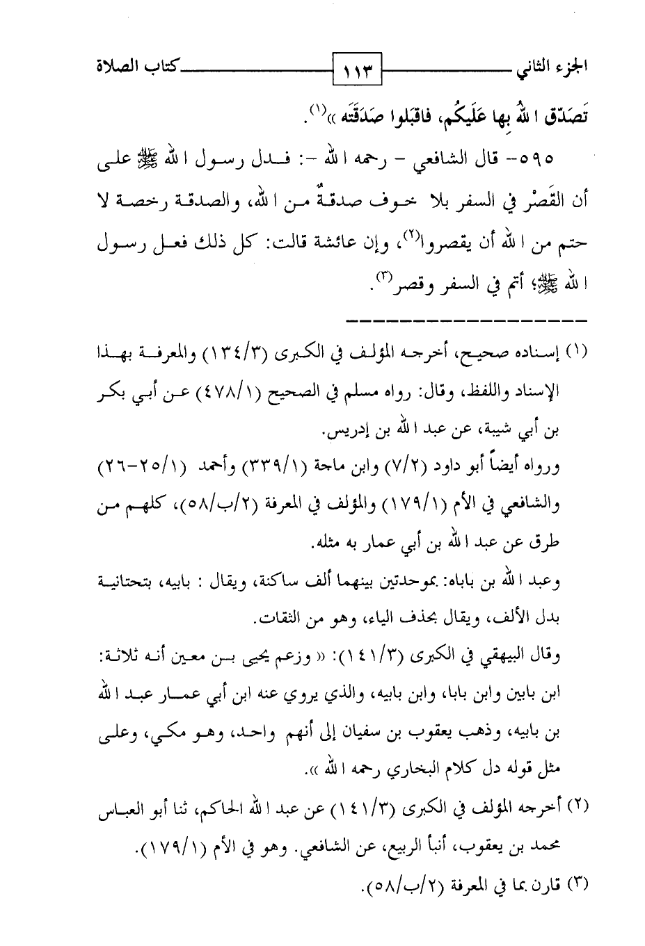 700 قال الشافعي فبين أبو سعيد الخدري أن ذلك كان قبل أن ينزل الله عز وجل على النبي صلى الله عليه وسلم الآية التي ذكر فيها صلاة الخوف ونسخ رسول الله صلى الله عليه وسلم سنته في تأخير الصلاة عن وقتها بفرض الله تعالى في كتابه ثم بسنته فصلاها رسول الله صلى الله عليه وسلم في وقتها كما وصفت وذكر الأحاديث التي وردت في صلاة الخوف وذكر حديث مالك عن نافع عن ابن عمر في صلاة شدة الخوف * 78 باب السنة في العيدين