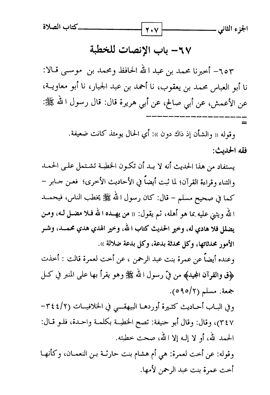 883 ورواه يزيد بن هارون عن هشام بن حسان عن محمد بن سيرين إلا أنه قال عن الأختصار في الصلاة قال قلنا لهشام ما الاختصار قال يضع يده على خصره وهو يصلي