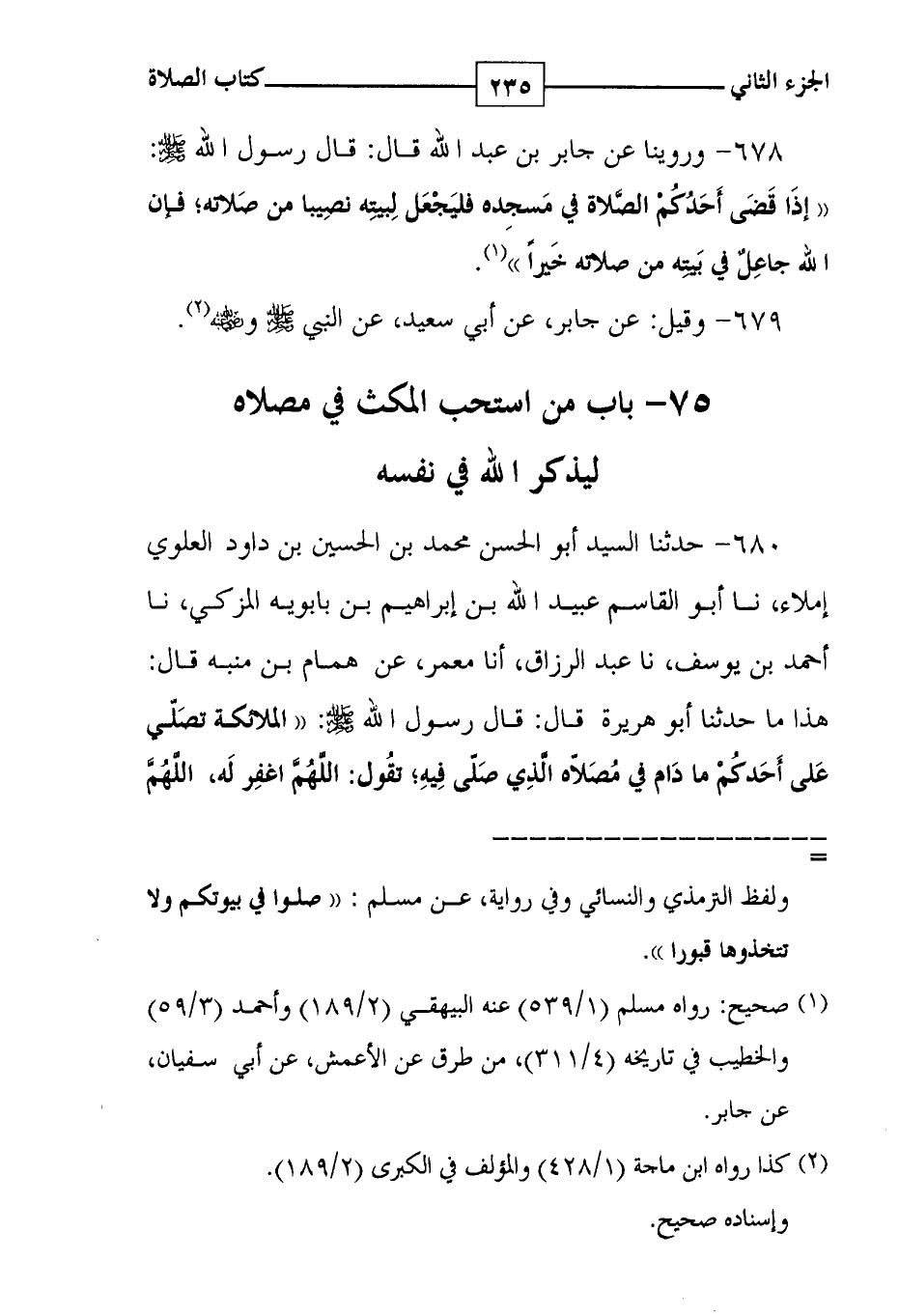 933 وروى ايضا في حديث جابر أنه سلم على النبي صلى الله عليه وسلم وهو يصلي فلم يرد عليه وأومى بيده * 112 باب حمل الصبي ووضعه في الصلاة