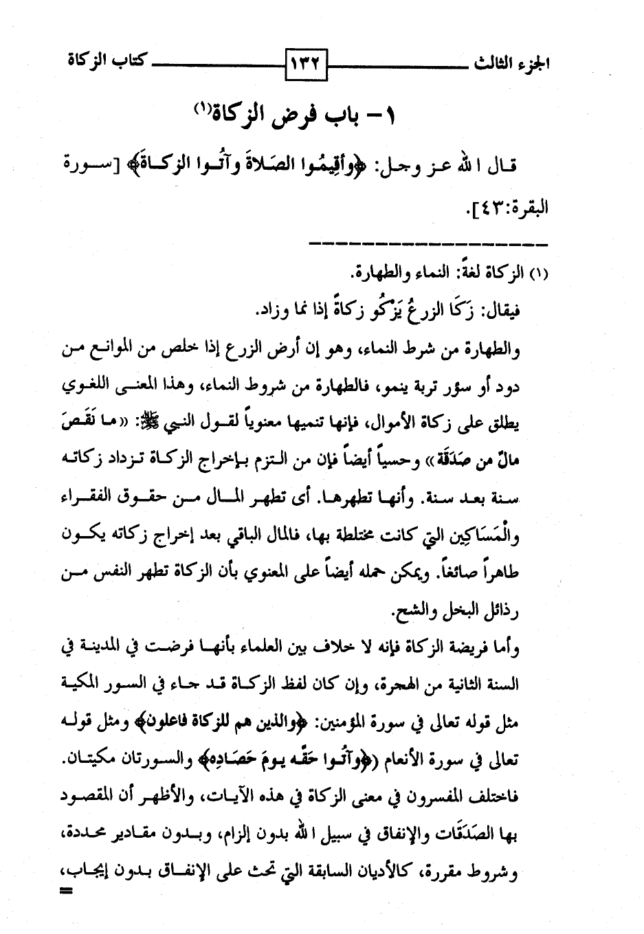 ( 1 - باب فرض الزكاة ) ( 1 ) قال الله عز وجل : ! ( وأقيموا الصلاة وآتوا الزكاة ) ! [ سورة البقرة : 43 ] .