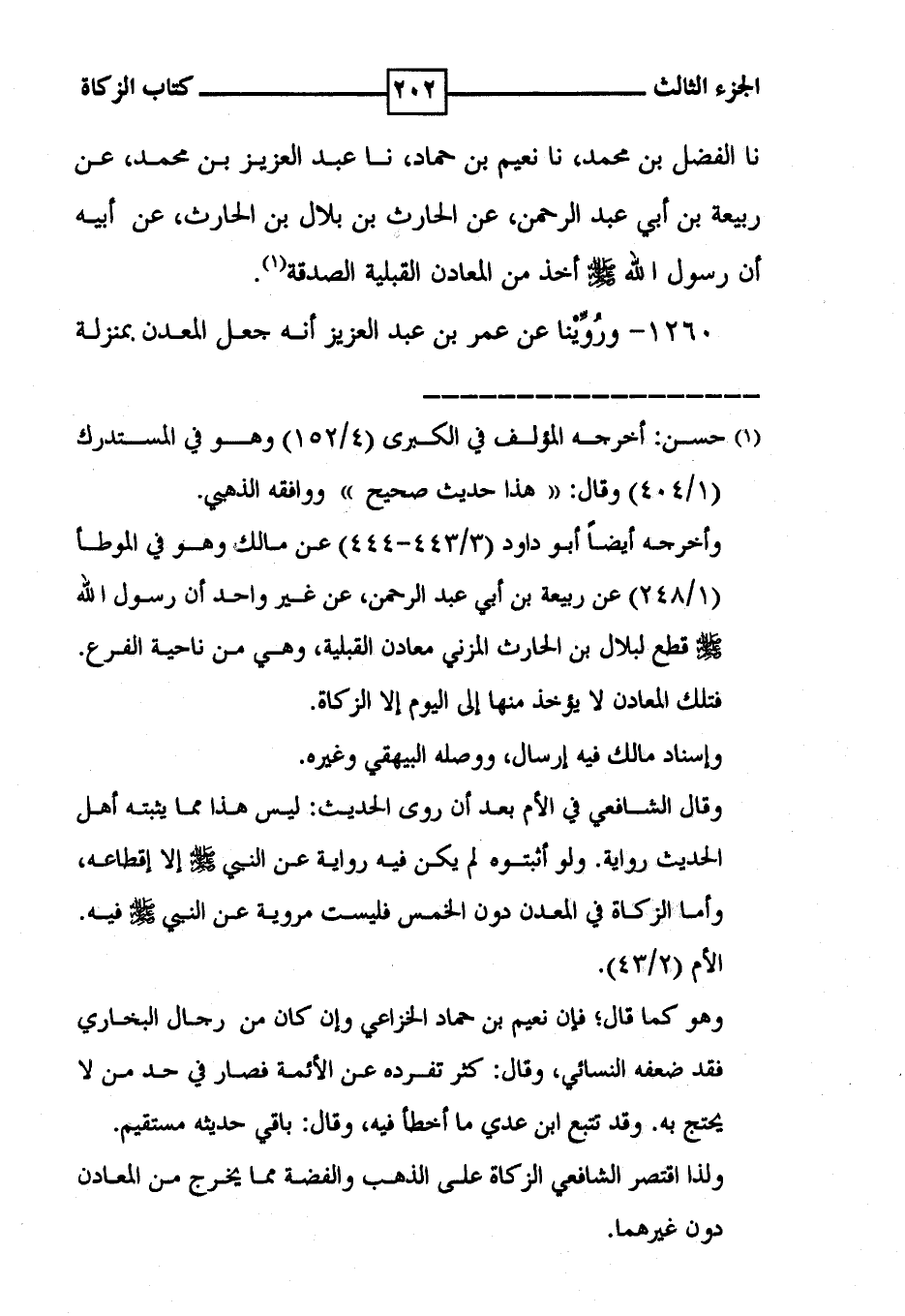 1260 - ورُوِّيْنا عن عمر بن عبد العزيز أنه جعل المعدن بمنزلة