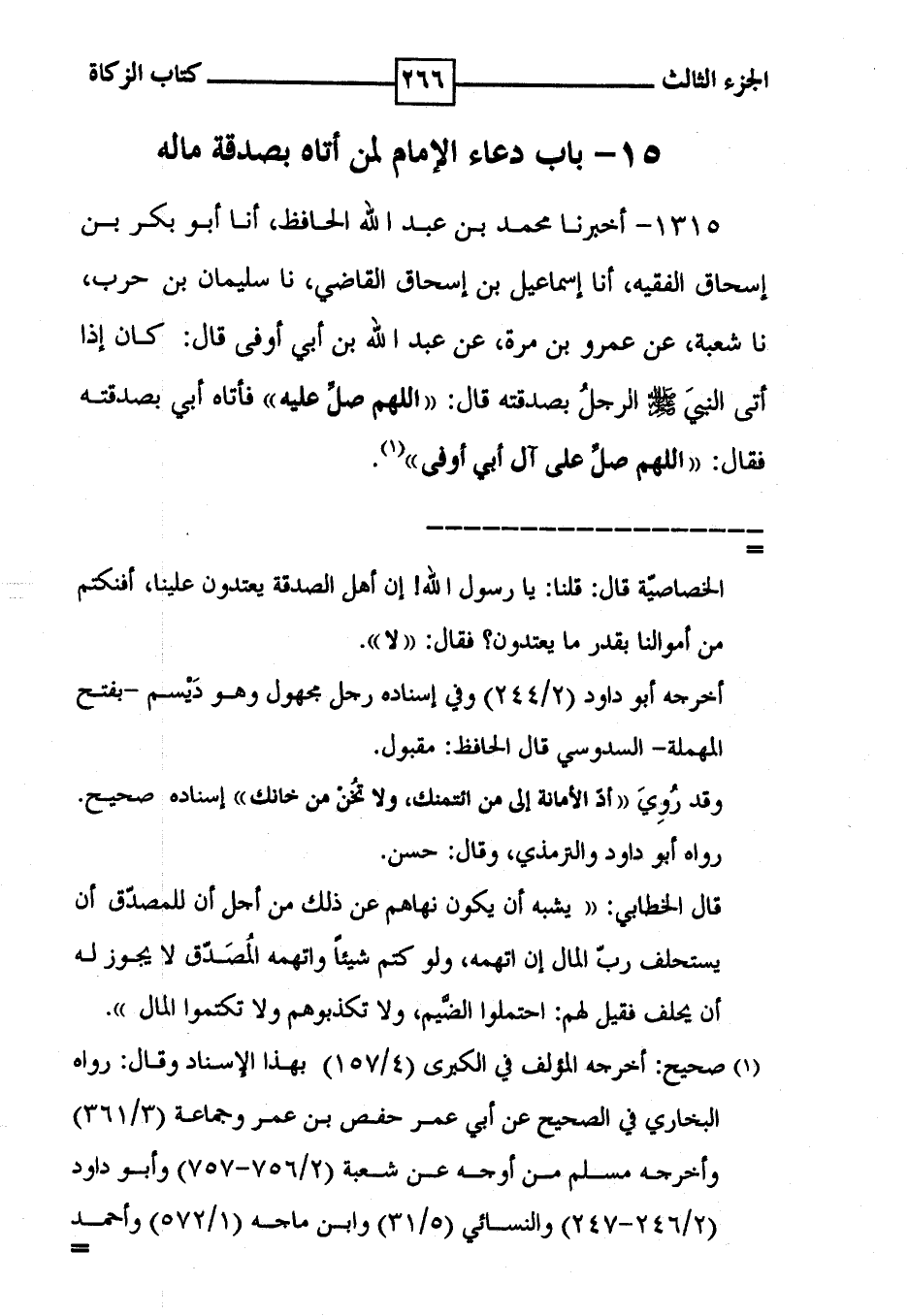 ( 15 - باب دعاء الإمام لمن أتاه بصدقة ماله )