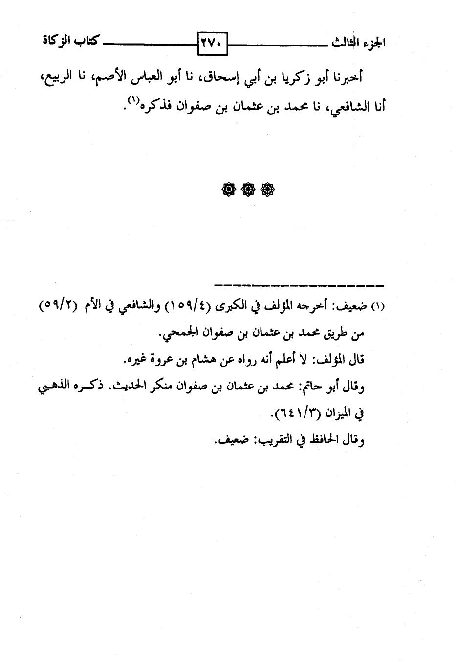 أخبرنا أبو زكريا بن أبي إسحاق ، نا أبو العباس الأصم ، نا الربيع أنا الشافعي ، نا محمد بن عثمان بن صفوان فذكره ( 1 ) .