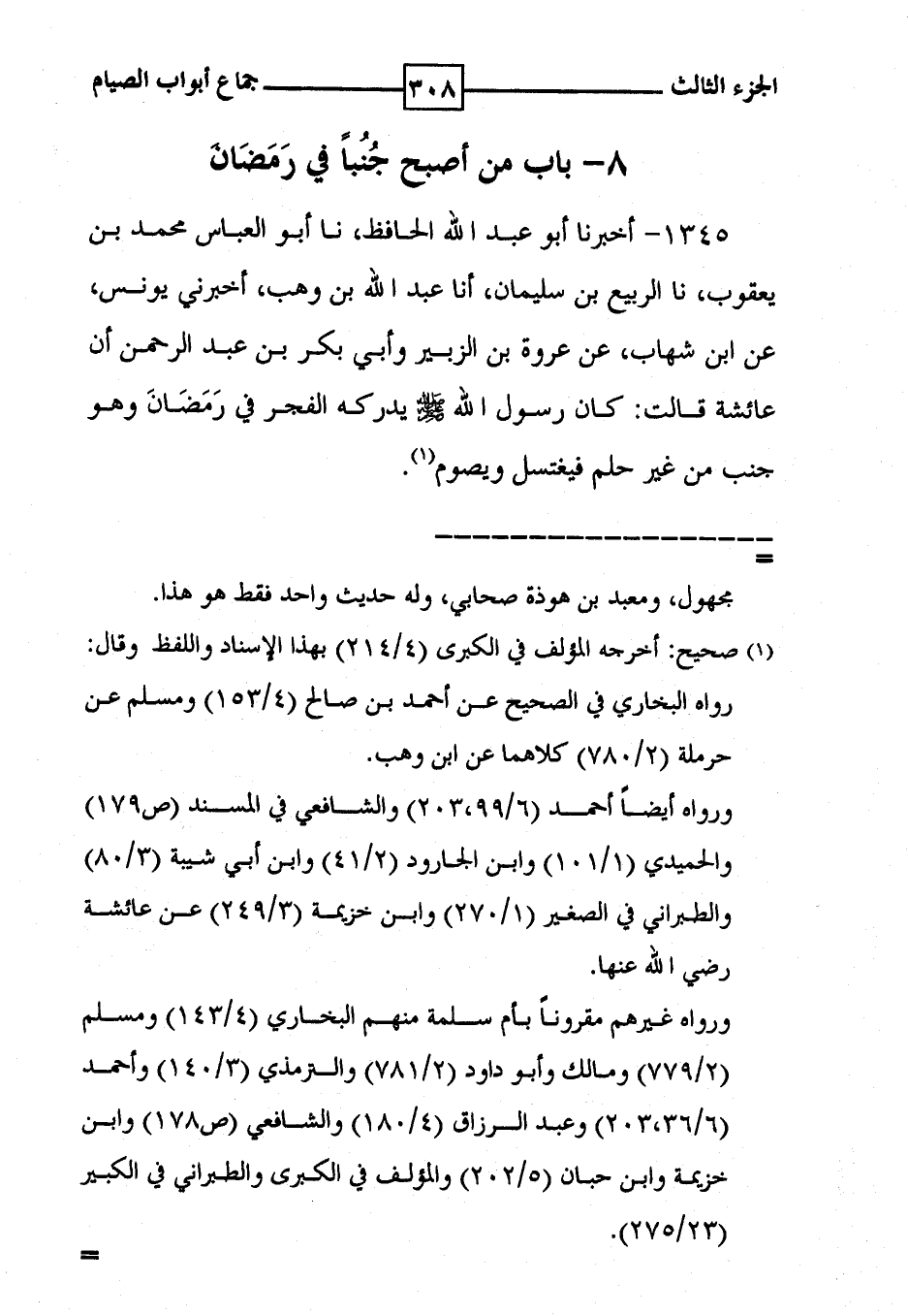 ( 8 - باب من أصبح جُنُباً في رَمَضَانَ )