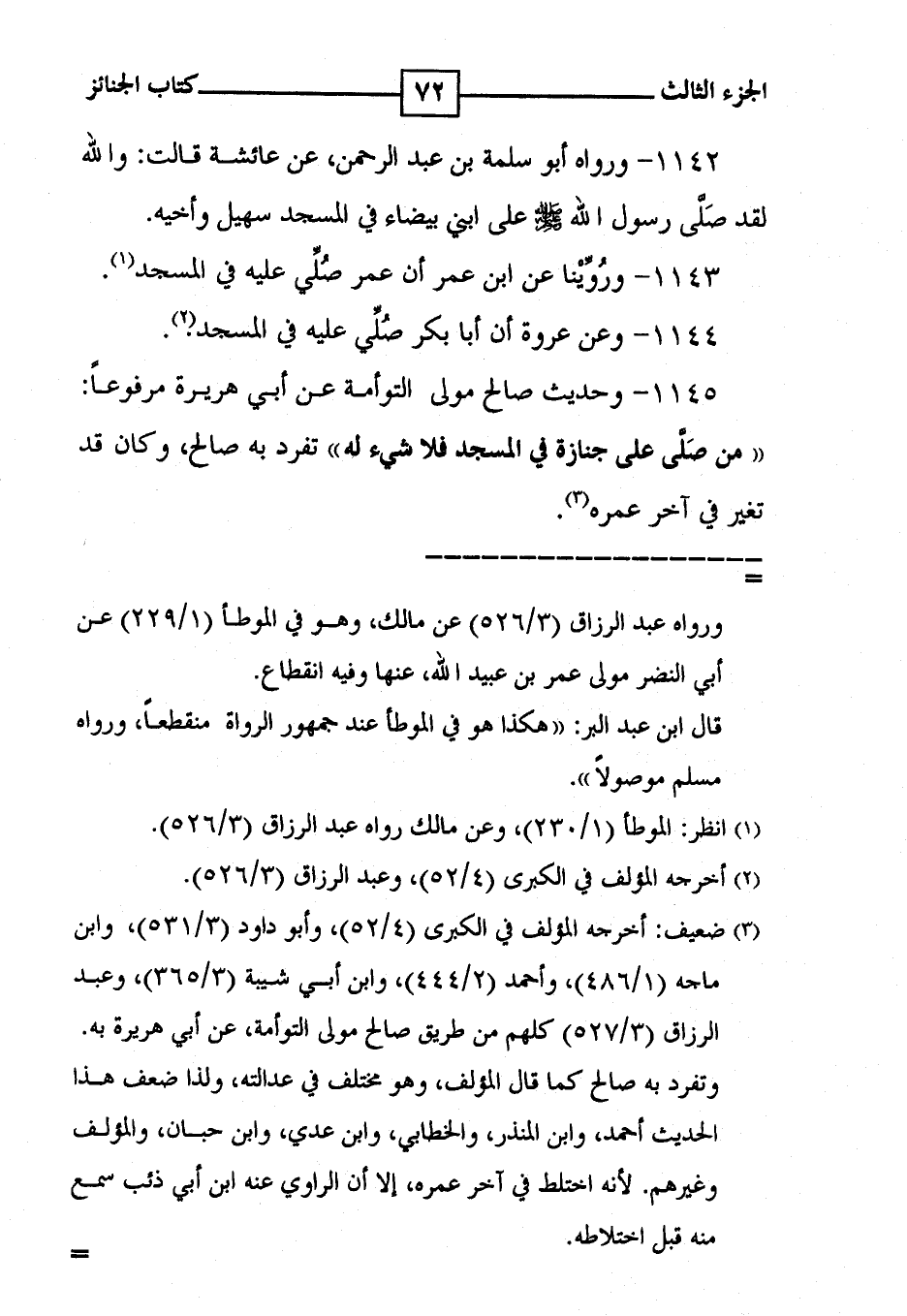 1143 - ورُوِّيْنا عن ابن عمر أن عمر صُلِّي عليه في المسجد ( 1 ) .