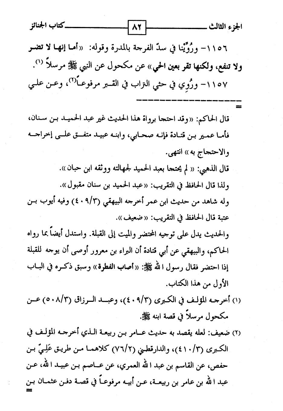 1156 - ورُوِّيْنا في سدّ الفرجة بالمدرة وقوله : ' أما إنها لا تضر ولا تنفع ، ولكنها تقر بعين الحي ' عن مكحول عن النبي [ صلى الله عليه وسلم ] مرسلاً ( 1 ) .