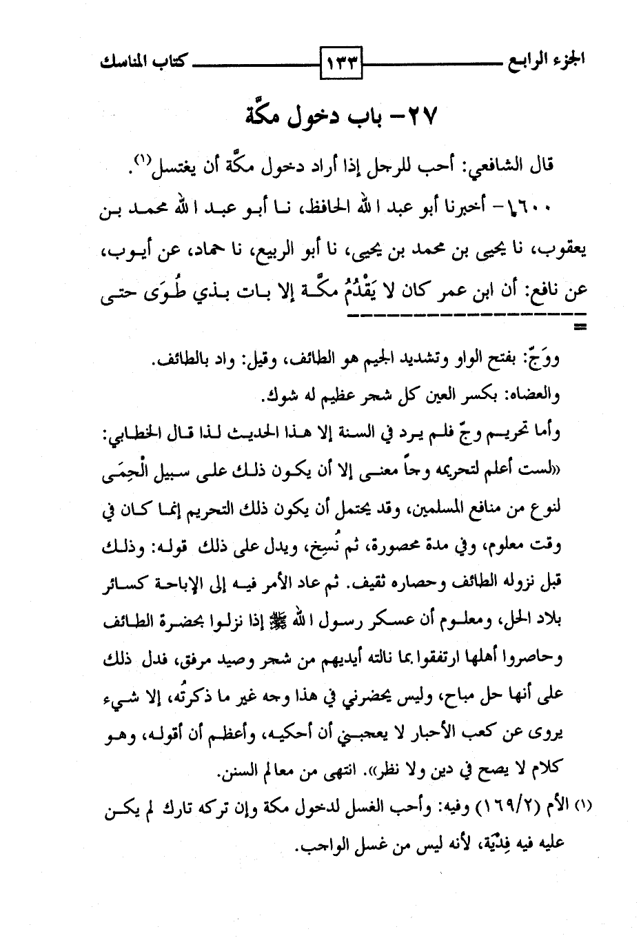 27 - باب دخول مكَّة قال الشافعي : أحب للرجل إذا أراد دخول مكَّة أن يغتسل ( 1 ) .