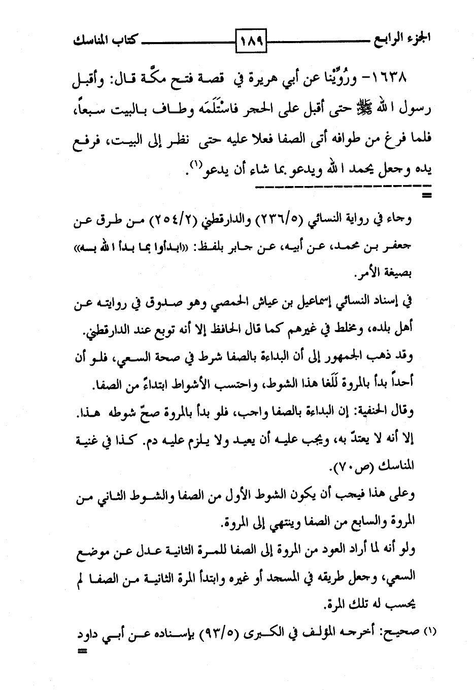 1638 - ورُوِّيْنا عن أبي هريرة في قصة فتح مكَّة قال : وأقبل رسول الله صلى الله عليه وسلم حتى أقبل على الحجر فاسْتَلَمَه وطاف بالبيت سبعاً ، فلما فرغ من طوافه أتى الصفا فعلا عليه حتى نظر إلى البيت ، فرفع يده وجعل يحمد الله ويدعو بما شاء أن يدعو ( 1 ) .