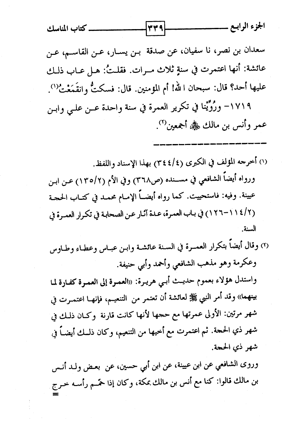1719 - ورُوِّيْنا في تكرير العمرة في سنة واحدة عن علي وابن عمر وأنس بن مالك رضي الله عنهم أجمعين ( 2 ) .