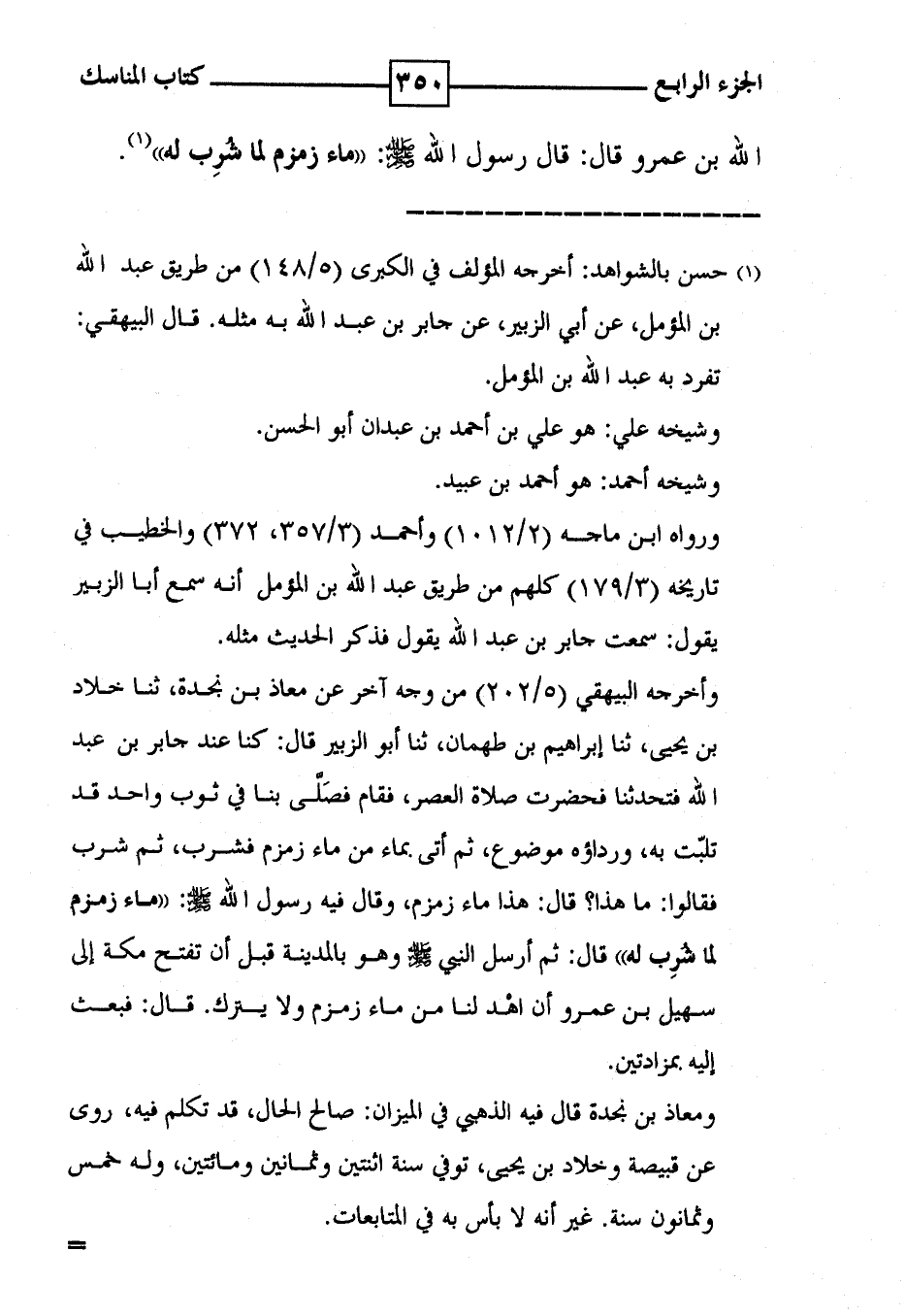 الله بن عمرو قال : قال رسول الله : ' ماء زمزم لما شُرِب له ' ( 1 ) .