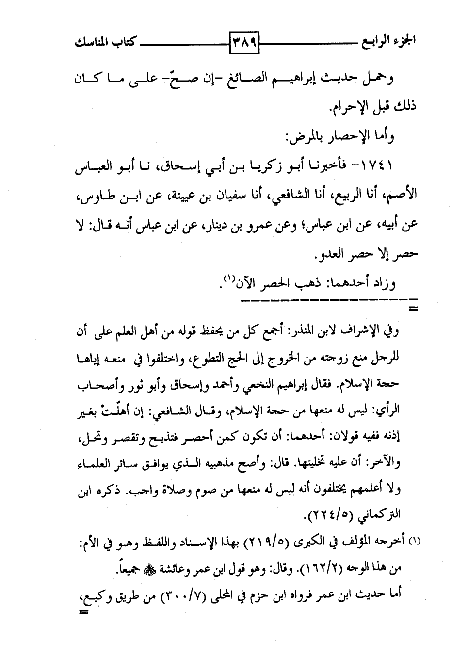 1741 - فأخبرنا أبو زكريا بن أبي إسحاق ، نا أبو العباس الأصم ، أنا الربيع ، أنا الشافعي ، أنا سفيان بن عيينة ، عن ابن طاوس ، عن أبيه ، عن ابن عباس ؛ وعن عمرو بن دينار ، عن ابن عباس أنه قال : لا حصر إلا حصر العدو . وزاد أحدهما : ذهب الحصر الآن ( 1 ) .