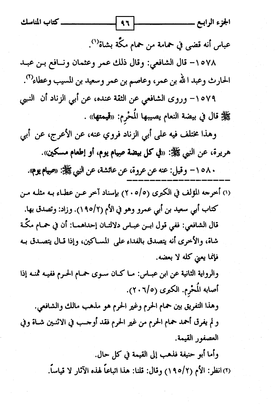 1578 - قال الشافعي : وقال ذلك عمر وعثمان ونافع بن عبد الحارث وعبد الله بن عمر ، وعاصم بن عمر وسعيد بن المسيب وعطاء ( 2 ) .