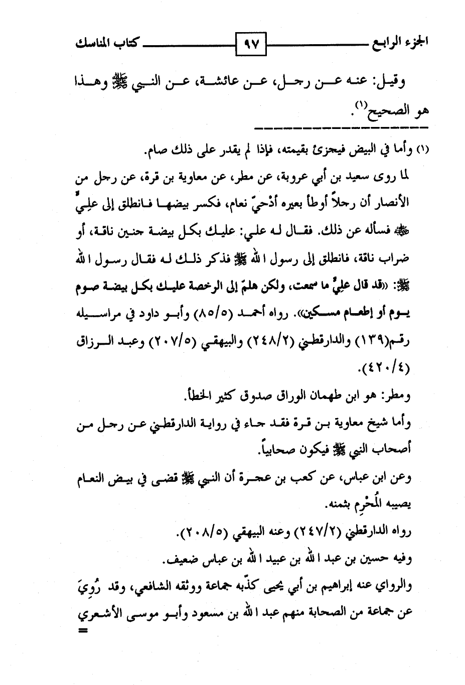 وقيل : عنه عن رجل ، عن عائشة ، عن النبي وهذا هو الصحيح ( 1 ) .