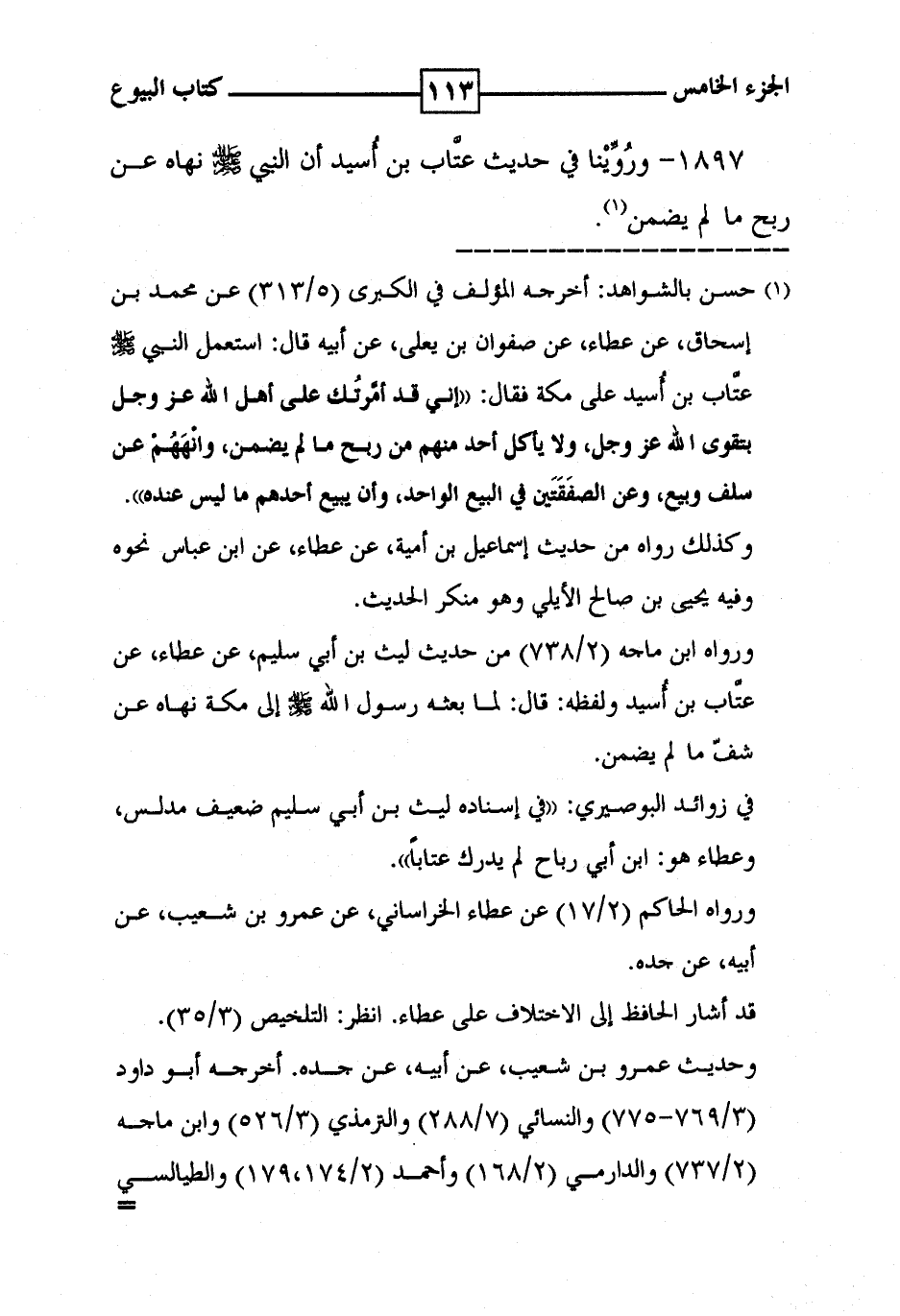 1897 - وروينا في حديث عتاب بن أسيد أن النبي [ صلى الله عليه وسلم ] نهاه عن ربح ما لم يضمن ( 1 ) .