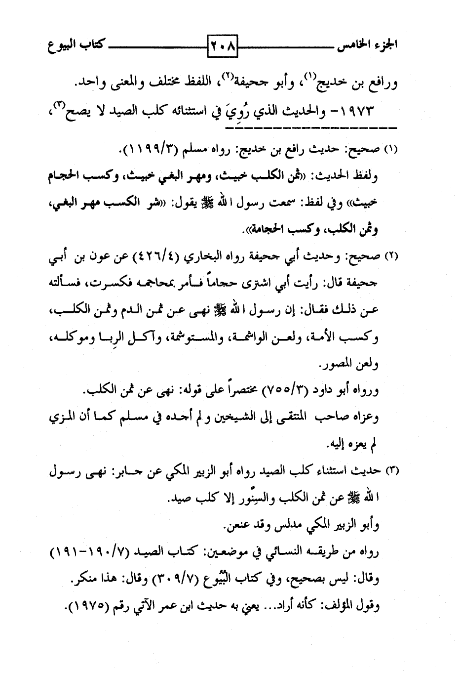 1973 - والحديث الذي روي في استثنائه كلب الصيد لا يصح ( 3 ) ،