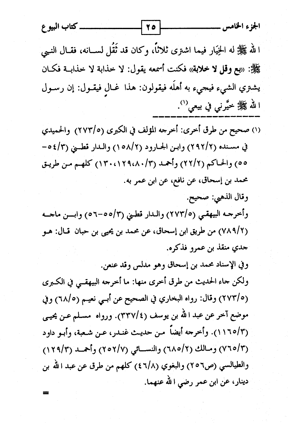 الله [ صلى الله عليه وسلم ] له الخيار فيما اشترى ثلاثاً ، وكان قد ثقل لسانه ، فقال النبي [ صلى الله عليه وسلم ] : ' بع وقل لا خلابة ' فكنت أسمعه يقول : لا خذابة لا خذابة فكان يشترى الشيء فيجئ به أهله فيقولون : هذا غال فيقول : إن رسول الله [ صلى الله عليه وسلم ] خيرني في بيعي ( 1 ) .