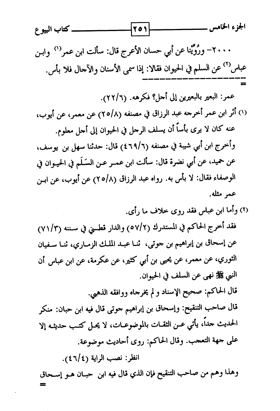 2000 - وروينا عن أبي حسان الأعرج قال : سألت ابن عمر ( 1 ) وابن عباس ( 2 ) عن السلم في الحيوان فقالا : إذا سمى الأسنان والآجال فلا بأس .
