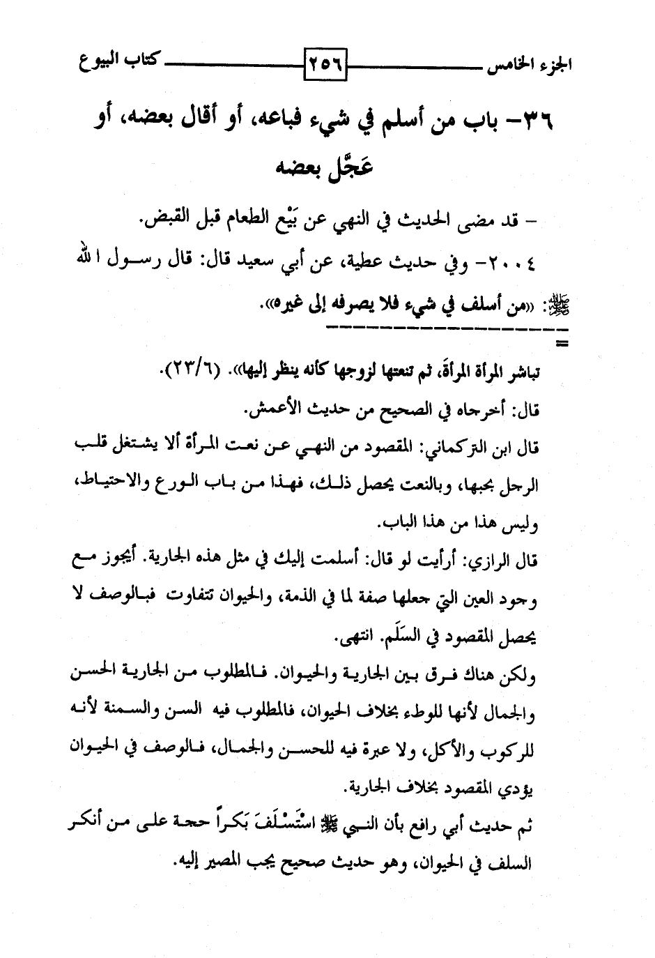 36 - باب من أسلم في شيء فباعه ، أو أقال بعضه ، أو عجل بعضه - قد مضى الحديث في النهي عن بيع الطعام قبل القبض .